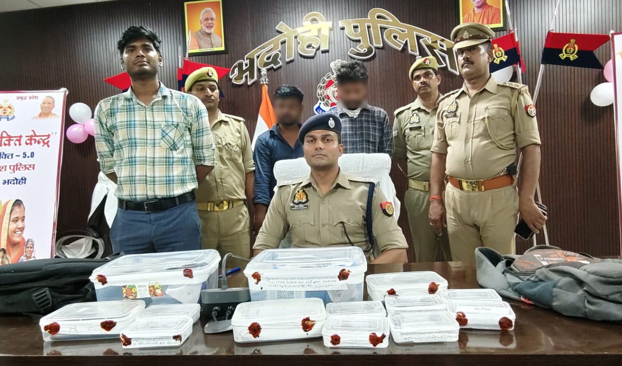 BHADOHI/GYANPUR NEWS: सीधे-साधे समान्य दुकानदारों को साजिश व षड्यंत्र रचकर क्यूआर कोड साउंड शुल्क माफ कराने का लालच देकर अपने जाल में फंसाकर रुपए ठगी करने के 2 अन्तर्राष्ट्रीय अभियुक्त गिरफ्तार कर लिए गए। शनिवार को पुलिस लाइन सभागार में पत्रकारों से बातचीत के दौरान एएसपी शुभम अग्रवाल ने इसका खुलासा किया। इस दौरान एएसपी ने बताया कि राहुल कुमार पुत्र राधेश्याम गौतम निवासी हरिकरनपुर थाना दुर्गागंज द्वारा साइबर थाना तहरीर देकर बताया कि अर्जुनपुर मोड़ पर उनके परचून व टी स्टाल की दुकान पर 11 सितंबर समय लगभग 5.15 बजें बाइक सवार 2 व्यक्तियों द्वारा पेटीएम का मासिक शुल्क माफ करने का लालच दिया। धोखाधड़ी कर 21000 रुपए ठगी कर लिया। उक्त के संबंध में साइबर क्राइम थाना पर बीएनएस की धारा 318(4) एवं 66डी सूचना प्रौद्योगिकी अधिनियम का अभियोग पंजीकृत कर विधिक कार्रवाई की गई। उन्होंने बताया कि आज प्रभारी निरीक्षक बृजेश सिंह मय हमराह पुलिस थाना साईबर थाना के साथ बाइक से वाराणसी की तरफ से औराई होते हुए मिर्जापुर की तरफ जाने की सूचना पर गिरफ्तार कर लिया गया। बाइक चला रहे व्यक्ति ने अपना नाम विशाल ओझा पुत्र सचेंद्र कुमार ओझा निवासी निराला नगर लेन नं.6 महमूरगंज थाना महमूरगंज वाराणसी व दूसरे ने अपना नाम प्रकाश पाठक पुत्र विजय कुमार पाठक निवासी न्यू एरिया डेहरी पाठक भवन आनसोन थाना डेहरी जिला रोहतास बिहार बताया। एएसपी ने कहा कि पूछताछ में अभियुक्तों ने बताया कि हमलोग आनलाइन बैंक खाता खुलवाते है। जिसमे केवाईसी वेरीफिकेशन नही होता है। केवल फेस वेरिफिकेशन होता है। जिसके कारण मेरा कोई दस्तावेज वहां जमा नही होता फिर उसी बैंक खाते मे फ्राड का पैसा मंगा लेते है। उन्होंने बताया कि अभियुक्तों के कब्जे से फोन पे साउंड बाक्स 2, पेमेंट क्यूआर कार्ड स्टैंड 2, पेटीएम क्यूआर कार्ड 7, डेविट कार्ड 7, एक सिम कार्ड, पैन कार्ड, 500 रुपए व तीन आधारकार्ड जिसमें फोटो एक ही व्यक्ति का है। किंतु नाम एवं जन्मतिथि मे परिवर्तन है। एक मोबाइल बिवो तथा सिम कार्ड एवं कुल 85 रुपया बरामद हुआ। घटना में प्रयुक्त बाइक को भी बरामद किया गया।