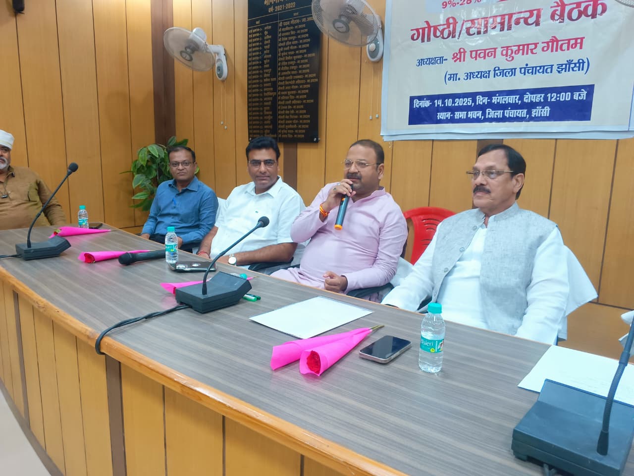 JHANSI NEWS: जिला पंचायत झाँसी के सभा भवन में पवन कुमार गौतम अध्यक्ष जिला पंचायत की अध्यक्षता तथा मुख्य अतिथि विधान परिषद सदस्य / राज्यमंत्री रामतीर्थ सिंघल की उपस्थिति में सामान्य बैठक व गौष्ठी सम्पन्न हुई, जिसमें प्रधानमंत्री एवं मुख्यमंत्री द्वारा विकसित भारत विकसित उत्तर प्रदेश @2047 तक भारत का विश्व पटल पर विश्व गुरू बनाये जाने का शताब्दी संकल्प लिये जाने के सम्बन्ध में अध्यक्ष द्वारा सदन को अवगत कराया गया कि आज हमारा देश आत्म निर्भरता की ओर बढ़ रहा है। यहीं पर छोटी से छोटी चिप से लेकर ब्रम्होस मिसाइल तक का निर्माण हम सब भारतवासी एक दूसरे के आपसी सहयोग एवं मेहनत से बनाने में सफल हो रहे हैं। वो दिन दूर नहीं है जब हम विकसित राष्ट्र के रूप में जल्द ही विश्व पटल पर अपना स्थान बनाने में सफल होगें। आज हमारा देश विश्व में जी०डी०पी० में चौथे स्थान पर है। इसी संकल्प के साथ हम सभी भारतीय संकल्प लें कि हम अपनी मेहनत, लगन व समर्पण से राष्ट्र को विकसित राष्ट्र बनायेगें। अध्यक्ष पवन गौतम ने सदन को अवगत कराया गया कि प्रधानमंत्री भारत सरकार द्वारा दीपावली पर्व के पूर्व घटी जी०एस०टी० मिला उपहार प्राप्त हुआ है। जिससे देश के मध्यमवर्गीय परिवारों में रोजमर्रा की वस्तुओं में आर्थिक लाभ प्राप्त होगा। इस लाभ से भारत देश को एक नई विकास की विशेष गति प्राप्त होगी। अध्यक्ष द्वारा वस्तुओं पर घटी हुई जी०एस०टी० दरों पर विस्तृत चर्चा की गयी, जिस पर उपस्थित चार्टर्ड अकाउंटेंट दुष्यन्त चतुर्वेदी, देव जैन, रिषभ अग्रवाल तथा जादौन द्वारा घटी हुई जी०एस०टी० पर सदन को विस्तृत रूप से अवगत कराया गया। अध्यक्ष ने इस सम्बन्ध में जन-जन तक जानकारी देने हेतु सभी सम्मानित जनप्रतिनिधियों/जिला पंचायत के सदस्यों से आवाहन किया। प्रधानमंत्री एवं मुख्यमंत्री द्वारा संचालित महिला सशक्तिकरण के अन्तर्गत मिशन शक्ति 5.0 के सम्बन्ध में अध्यक्ष द्वारा महिलाओं को अत्म निर्भर व स्वावलम्बी तथा अपने अधिकारों के प्रति जागरूकता के सम्बन्ध में व उनसे जुड़ी जन कल्याणकारी योजनाओं जैसे-उज्जवला गैस, बेटी बचाओ-बेटी पढ़ाओं, कन्या विद्या धन योजना, सुमंगला योजना एवं जमीनी कागजातों में महिलाओं का नाम अंकित कराया जाना व अन्य महिला सशक्तिकरण के सम्बन्ध में जन-जन तक योजनाओं को पहुंचाने का सदन में आवाहन करते हुए सदन में उपस्थित सभी से सरकार द्वारा संचालित इन योजनाओं में भागीदारी निभाने एवं महिला मिशन शक्ति को आगे बढ़ाने हेतु विस्तृत रूप से जानकारी दी गयी। इसी क्रम में अध्यक्ष द्वारा सदन को अवगत कराया गया कि हमारे देश में आज की महिलायें किसी भी मायने में कम नहीं हैं। जम्मू कश्मीर में दुर्गम पहाड़ों के मध्य बहने वाली चिनार नदी पर सबसे ऊँच