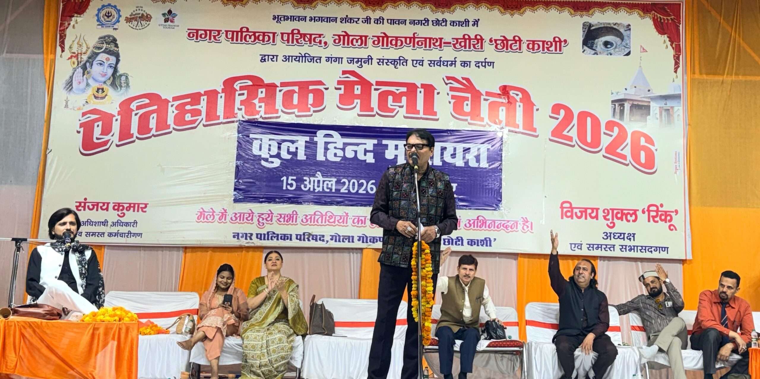 छोटी काशी के ऐतिहासिक मेला चैती 2026 के उन्नीसवें दिन सांस्कृतिक मंच पर आयोजित ‘कुल हिन्द मुशायरा’ शायरी, सद्भाव और गंगा-जमुनी तहज़ीब का गवाह बना। देर रात तक चले इस मुशायरे में देशभर से आए शायरों ने मोहब्बत, इंसानियत और भाईचारे की ऐसी शमा रोशन की कि श्रोता मंत्रमुग्ध हो गए। कार्यक्रम का शुभारंभ मुख्य अतिथि पूर्व जिला पंचायत सदस्य राजा जफर उल्ला खां, कार्यक्रम अध्यक्ष गोला पब्लिक इंटर कॉलेज प्रबंधक बीए खान एवं विशिष्ट अतिथियों ने शमा रोशन कर किया। समाजसेवी सलीम खां, रकीम खां, अयूब खां, मौलाना आजाद काशमी, हाफिज शकील, अफसर खां, एड. अमीन, राजा राम वर्मा, डॉ. समर्पित मिश्रा, ज्योतिषाचार्य अनुज सिंह कछवाहा, विजय राठी, कर्म सिंह, गुरुदेव शर्मा, एड. विवेक अवस्थी, शिवेन्द्र अनुराग, सरोज आरिफ, जय शंकर प्रसाद शुक्ला, भाजपा जिला मंत्री उमेश शुक्ला, भाजयुमो जिला अध्यक्ष राम पाण्डेय व नगर पालिका अध्यक्ष विजय शुक्ला रिंकू सहित तमाम गणमान्य मौजूद रहे। सभी अतिथियों का स्मृति चिह्न व पुष्प मालाओं से स्वागत किया गया।