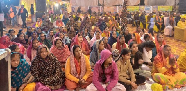 इसमें महंत पंडित विनोदानंद शास्त्री जी महाराज ने शुक्रवार 19 दिसम्बर को संदेश दिया कि सच्ची शक्ति अहंकार में नहीं, बल्कि धर्म, विनम्रता और सद्गुणों में होती है। सीता स्वयंवर के प्रसंग में जहां विवाहोत्सव का उल्लास दिखा वहीं राम वन गमन में भक्तों की आंखें भर आयीं। आचार्य देवकीनंदन मिश्रा के संयोजन में हो रहे इस वार्षिक 11वें महा अनुष्ठान में आगंतुक सौभाग्यशाली भक्तों ने सरस भजनों का भी आनंद लिया। “झुक जइयों तनिक रघुवीर लली मेरी छोटी सी” और “देख कर रामजी को जनक नंदिनी” जैसे कई रसीले भजनों पर बच्चों से लेकर वरिष्ठ जन तक झूम उठे। इस कथा का आयोजन दोपहर 3 से रात आठ बजे तक किया जा रहा है। शुक्रवार को कथा का आरंभ मंत्रोच्चार से हुआ। उसके उपरांत आवाहन, षोडशोपचार पूजन, आरती, भजन कीर्तन किया गया। केन्द्रीय आकर्षण श्रीमद् भागवत कथा में महंत पंडित विनोदानंद शास्त्री महाराज ने सीता स्वयंवर के प्रसंग की व्याख्या विस्तार से की। उन्होंने बताया कि यह प्रसंग राम और सीता के पवित्र और दैवीय मिलन का प्रतीक है जो दर्शाता है कि सच्ची शक्ति अहंकार में नहीं, बल्कि धर्म, विनम्रता और सद्गुणों में होती है। वास्तव में सीता स्वयंवर धर्म की स्थापना का प्रतीक है। इसी क्रम में उन्होंने राम वन गमन का प्रसंग भी सुनाया। इसके माध्यम से उन्होंने संदेश दिया गया कि वास्तव में राम वन गमन कर्तव्यनिष्ठा, वचनबद्धता, त्याग और संघर्ष का संदेश देती है। यह घटना हिंदू धर्म में नैतिकता और आदर्श पुत्र के रूप में भगवान राम के चरित्र को दर्शाती है।