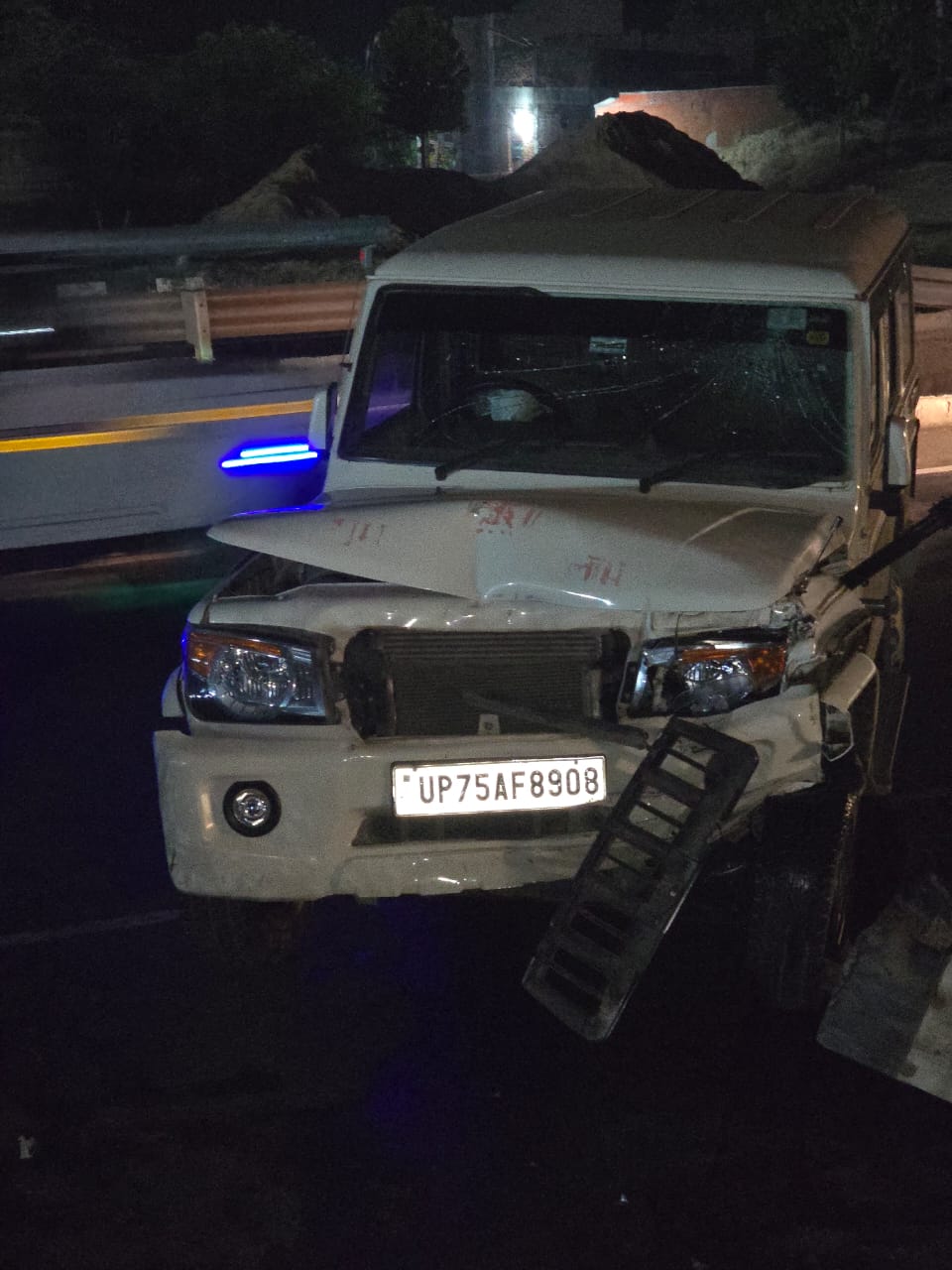 ट्रक की टक्कर से अनियंत्रित होकर बोलेरो डिवाइडर तोड़ पलटी, एक घायल