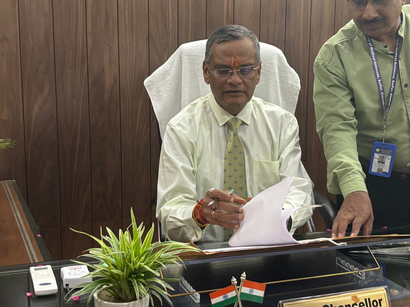 ETAWA NEWS: उत्तर प्रदेश आयुर्विज्ञान विश्वविद्यालय, सैंफई में प्रो० (डॉ.) अजय सिंह ने मंगलवार पूर्वाह्न को विधिवत रूप से कुलपति का पदभार ग्रहण किया। उनका सर्वप्रथम स्वागत पूर्व कार्यवाहक कुलपति प्रोफेसर डॉ पीके जैन ने पुष्प गुच्छ प्रदान कर किया। इस अवसर पर विश्वविद्यालय के प्रति कुलपति, वित्त अधिकारी, कुलसचिव, परीक्षा नियंत्रक, समस्त संकायाध्यक्ष, चिकित्सा अधीक्षक समेत अन्य अधिकारी मौजूद रहें।कुलपति प्रो० (डॉ.) अजय सिंह, जिन्हें चिकित्सा शिक्षा, अनुसंधान व प्रशासन में चार दशकों का अनुभव व बाल अस्थि रोग चिकित्सा के क्षेत्र में देश-विदेश के अग्रणी विशेषज्ञों में उनकी एक विशेष पहचान है। उन्हें चिकित्सा के क्षेत्र में राष्ट्रीय एवं अंतरराष्ट्रीय स्तर पर लगभग 64 पुरस्कारों से सम्मानित किया जा चुका है जो उनकी अदम्य क्षमता व कुशल नेतृत्व को प्रदर्शित करता है। इससे पूर्व वह चिकित्सा के क्षेत्र में कई अहम पदों पर आसीन रहे, यूपीयूएमएस कुलपति का पदभार ग्रहण करने से पूर्व उन्होंने भोपाल एम्स, रायपुर एम्स के साथ-साथ गोरखपुर एम्स निदेशक का भी कार्यभार संभाला है।कार्यभार ग्रहण करने के बाद कुलपति ने कहा कि हम विश्वविद्यालय को नई उचाइयां प्रदान करने के लिए सभी को साथ लेकर चलेंगे और बेहतर चिकित्सा शिक्षा के साथ-साथ लोगों को बेहतर स्वास्थ्य सेवाएं प्रदान करने के की दिशा में तत्परता से कार्य करेंगे। एक नजर प्रोफेसर डॉ अजय सिंह की उपलब्धियां पर.प्रो० (डॉ.) अजय सिंह ने 1985 में एमबीबीएस तथा 1989 में किंग जॉर्ज मेडिकल कॉलेज लखनऊ से ऑर्थोपेडिक सर्जरी में स्नातकोत्तर की डिग्री प्राप्त की।वे 2004 में किंग जॉर्ज मेडिकल कॉलेज के बाल अस्थि रोग विभाग में सहायक प्रोफेसर के रूप में नियुक्त हुए। इसके उपरांत वे केजीएमयू में 2013 में प्रोफेसर बने और 2016 से बाल अस्थि रोग विभाग के विभागध्यक्ष के रूप में कार्यरत हुए।मुख्य पीडियाट्रिक ओर्थोपेडिक सर्जन के रूप में 25 बेडेड बाल अस्थि रोग यूनिट का नेतृत्व किया जो भारत का पहला स्वतंत्र बाल अस्थि रोग विभाग बना।उत्तर प्रदेश सरकार द्वारा अनुमोदित एमसीआई, एमसीएच सुपर स्पेशलिटी कोर्स प्रारंभ कराने में उनकी प्रमुख भूमिका रही।9 पुस्तकें, 250 वैज्ञानिक शोध पत्रों का प्रकाशन, 106 शोध परियोजनाओं में मार्गदर्शन की भूमिका, 318 शोध पत्र देश विदेश में प्रस्तुत किए तथा 228 वैज्ञानिक सम्मेलन में भाग लिया।