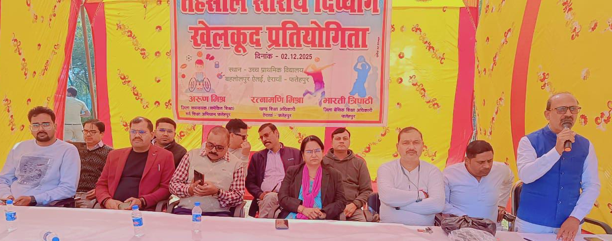 FATEHPUR NEWS: खागा तहसील क्षेत्रांतर्गत विकास खण्ड ऐरायाँ के उच्च प्राथमिक विद्यालय बहलोलपुर ऐलई में आज तहसील स्तरीय दिव्यांग खेलकूद प्रतियोगिता आयोजित की गई। कार्यक्रम का संचालन खंड शिक्षा अधिकारी रत्नामणि मिश्रा के नेतृत्व में हुआ। प्रतियोगिता की अध्यक्षता राष्ट्रीय स्वयंसेवक संघ के विभाग सह संघचालक कृष्ण स्वरूप सिंह ने की, जबकि डॉ. धर्मेंद्र सिंह, जिला सेवा प्रमुख, मुख्य अतिथि के रूप में मौजूद रहे। खंड शिक्षा अधिकारी रत्नामणि मिश्रा ने बताया कि दिव्यांग बच्चों को शिक्षा व समाज की मुख्यधारा से जोड़ने के उद्देश्य से यह प्रतियोगिता शासन के निर्देशानुसार आयोजित की गई। इसमें खागा तहसील के ऐरायाँ, धाता, विजयीपुर और हथगाम विकास खंडों से लगभग 100 बच्चे शामिल हुए। प्रतियोगिता में बालक और बालिका वर्ग में 100 मीटर दौड़, कुर्सी दौड़, गुब्बारा फुलाना, टोकरी में गेंद डालना, दृष्टिबाधित बच्चों के लिए छूकर पहचानना और रंग भरो जैसी गतिविधियों का आयोजन किया गया। विभिन्न प्रतियोगिताओं में बच्चों ने उत्साह से भाग लिया और श्रेष्ठ प्रदर्शन किया। प्रतियोगिता में प्राथमिक शिक्षक संघ के जिला महामंत्री एवं ऐरायां ब्लॉक अध्यक्ष विजय त्रिपाठी, ब्लॉक मंत्री आकाश सिंह, आर एस एम के ब्लॉक अध्यक्ष पुष्पेंद्र सिंह, एआरपी रघुराज सिंह सहित कई शिक्षक और अधिकारी शामिल रहे।