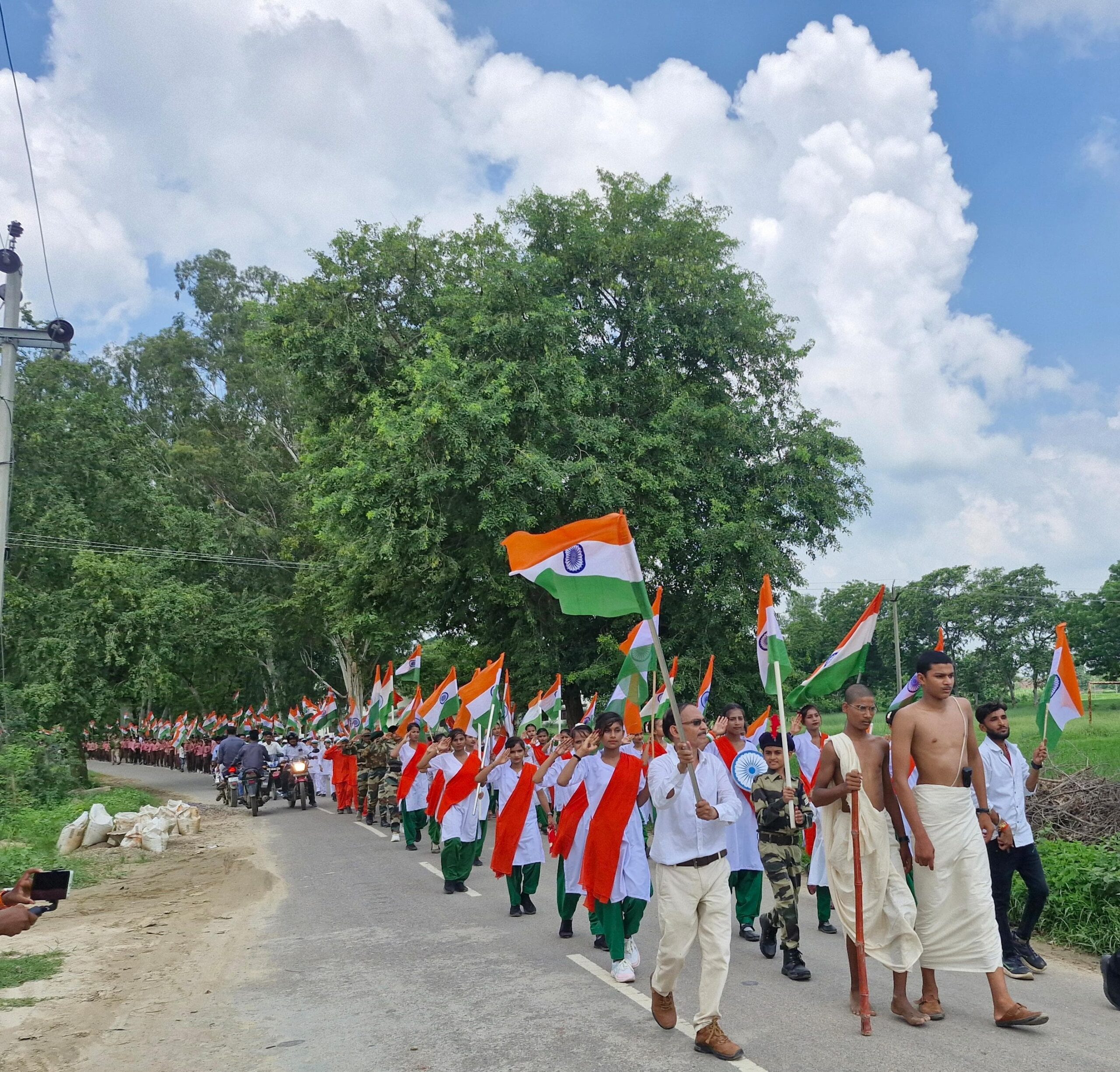 मॉडल स्कूल कटरा गुलाब के बच्चों ने निकाली भव्य तिरंगा यात्रा