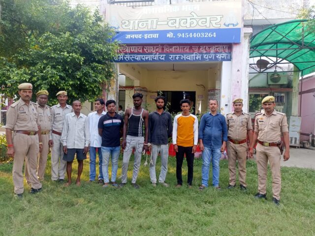 ETAWA NEWS: थाना बकेवर पुलिस ने रविवार को बड़ी कार्रवाई करते हुए 11 अभियुक्तों को गिरफ्तार कर न्यायालय के समक्ष पेश किया। गिरफ्तार किए गए अभियुक्तों के खिलाफ धारा 170/126/135 बीएनएसएस के तहत कार्रवाई की गई है। गिरफ्तार अभियुक्तों में राहुल पुत्र मुकुट सिंह (27) निवासी ग्राम बिजौली, अवधेश पुत्र श्रीराम दुलारे (40), सत्यवीर पुत्र सुरेश चंद्र (19), बॉबी पुत्र अवधेश कुमार (19) निवासी इंदरौसी, अभिलाख नारायण उर्फ बबलू पुत्र विद्यानारायण (42) निवासी नहर बाजार लखना, बंटी पुत्र रामप्रकाश (22) निवासी तालाब मोहल्ला लखना, नरेंद्र सिंह पुत्र छोटेलाल (42) निवासी नया नगला पोस्ट महेवा, श्याम तिवारी पुत्र अनिल कुमार (28) निवासी ग्राम इकनौर, आलोक पुत्र राजबहादुर (38) निवासी ग्राम इकनौर, शैलेष पुत्र अशोक कुमार (31) निवासी ग्राम मड़ैया अहिरान तथा आशीष कुमार पुत्र तुलाराम (28) निवासी सुंदरपुर थाना बकेवर शामिल हैं। पुलिस ने बताया कि सभी अभियुक्तों को गिरफ्तार कर अग्रिम विधिक कार्रवाई हेतु न्यायालय उपजिलाधिकारी भरथना/चकरनगर के समक्ष पेश किया गया है।