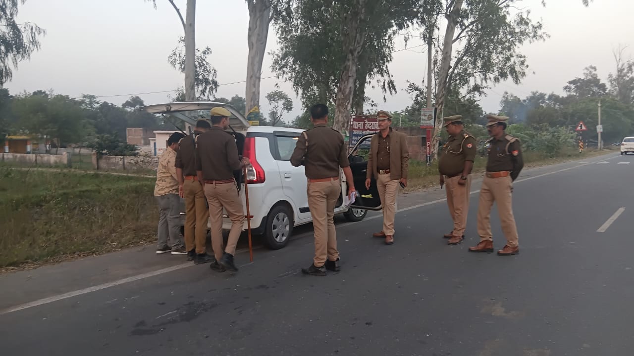 LAKHIMPUR KHERI NEWS:विगत दिनो दिल्ली मे लालकिले के पास हुये बमब्लास्ट के चलते उसमे लगभग बारह लोग मर गये जबकि कई दर्जन लोग घायल हो गये। वही ग्रह मंत्रालय की ओर से भारत देश के सभी देशो के जिलो को एलर्ट किया गया। वही देश के सभी प्रमुख मन्दिरो मथुरा, अयोध्या,काशी अक्षर धाम,सहित देश के सैकड़ो मन्दिरो की सुरक्षा बढा दी गई है।वही जिला लखीमपुर खीरी के पुलिस अधीक्षक संकल्प शर्मा के दिशानिर्देश मे हैदराबाद थानाध्यक्ष सुनील कुमार मलिक की अगुवाई मे हैदराबाद थाना क्षेत्र के अंतर्गत आने बाले सभी प्रमुख मार्गो पर चार पहिया वाहनो की तलाश अभियान चलाया गया ।इस दौरान लगभग चार दर्जन से अधिक संदिग्ध वाहनो की चेकिंग की गई। इस अवसर पर हैदराबाद थाने के एस एस आई संतपाल सिंह राठौर, अशोक सिंह सहित तमाम पुलिस बल मौजूद रहा।