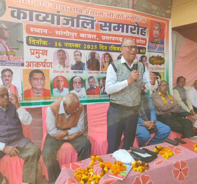 PRATAPGARH NEWS : सांगीपुर क्षेत्र के कटरा गांव में स्वतंत्र कवि मंडल के तत्वाधान में महाकवि पं0 छविश्याम पांडेय की स्मृति में आयोजित कवि सम्मेलन में कवियों ने अपनी रचनाओं से समाज और राष्ट्र की कुरीतियों पर करारा प्रहार किया। विभिन्न विधाओं की रचनाओं ने श्रोताओं को न केवल बांधे रखा, बल्कि समाज को दिशा देने का कार्य भी किया। कवि सम्मेलन की शुरुआत सुनीता आजमगढ़ी की वाणी वंदना से हुई। इसके बाद प्रेम कुमार त्रिपाठी ने चंद्रशेखर आजाद पर केंद्रित अपनी ओजपूर्ण कविता से राष्ट्रप्रेम का अलख जगाया। वहीं जयराम पाण्डेय ‘राही’ की पंक्तिया “जो दिल दुखा रहे हैं अपने मां-बाप का, उनको किसी तीर्थ का फल नहीं मिलता” ने उपस्थित लोगों को माता-पिता की सेवा के प्रति जागरूक किया। अनूप त्रिपाठी ने चुनाव आते ही नेताओं के बदलते तेवर पर तंज कसते हुए कहा “चुनाव आते ही नेतागण फलसफा बताते हैं, हिंदू-मुस्लिम में यही भेद बताते हैं, ने खूब सराहना बटोरी। ओमप्रकाश पाण्डेय ‘गुड्डू’ ने मानव स्वार्थ पर चोट करते हुए “स्वार्थ की बेड़ियों से बंधा आदमी, जितना ऊपर गया उतना नीचे गया पढ़ा तो जमकर तालियां बजी। कार्यक्रम के मुख्य अतिथि पूर्व प्रधानाचार्य वीरेंद्र शुक्ल ने कहा कि कवि समाज का सच्चा पथप्रदर्शक होता है, जो समय-समय पर अपनी वाणी से समाज को आईना दिखाता है। कवि सम्मेलन में अरुण रत्नाकर, संजय शुक्ल, पवन प्रखर, ज्ञानेंद्र पाण्डेय ‘मधुरस’, श्याम शंकर पाण्डेय ‘विनोद’, शब्बीर सूरी, चंद्रशेखर विकास, गीता पाण्डेय ‘अपराजिता’, दीपेंद्र ‘तन्हा’, देवेंद्र सिंह ‘काका’, उज्जड़ जौनपुरी व अन्य कवियों ने अपनी रचनाओं से वातावरण को काव्यमय किया। कार्यक्रम की अध्यक्षता ओमप्रकाश पाण्डेय व संचालन हरिवंश शुक्ल ‘शौर्य’ ने किया। संजोयक ग्राम प्रधान राकेश सिंह ने अतिथियों का स्वागत किया। आयोजक यज्ञ कुमार सिंहम ने सभी के प्रति आभार जताया। इस मौके पर क्षेत्रीय लोग मौजूद रहे।
