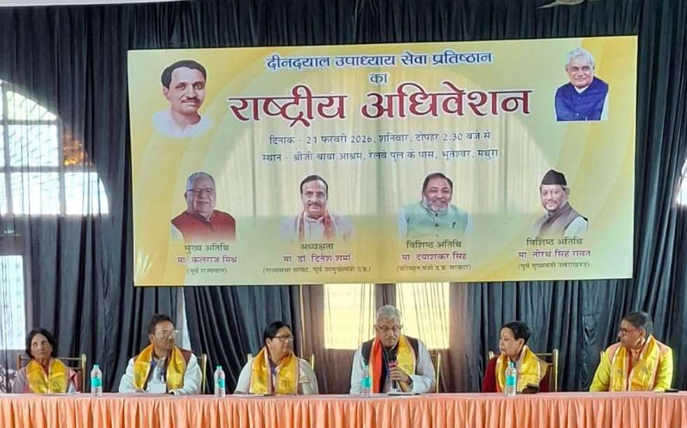 MATHURA NEWS: दीनदयाल उपाध्याय सेवा प्रतिष्ठान का दो दिवसीय राष्ट्रीय अधिवेशन मथुरा में संपन्न हुआ सम्मेलन का शुभारंभ पंडित दीनदयाल जी के और भारत माता के चित्रपट पर माल्यार्पण और दीप प्राज्वलनके साथ हुआ। इसके बाद महिला सामाजिक कार्यकर्ता नीरा सिन्हा ने अपनी टीम के साथ वंदे मातरम गायन की प्रस्तुति की। मंचासीन अतिथियों के स्वागत के बाद कार्यक्रम महामंत्री पीके मिश्रा द्वारा वार्षिक रिपोर्ट प्रस्तुत की गई। राष्ट्रीय अध्यक्ष प्रवीण मिश्रा द्वारा अपने उद्बोधन में कहां गया कि वर्तमान समय में प्रत्येक विश्वविद्यालय में एक दीनदयाल शोध पीठ संस्थान की स्थापना होना जरूरी है ।और प्रतिष्ठान इस दिशा में आगे बढ़ेगा।क्योंकि आज भारत देश मे जो परिवर्तन दिख रहा हैं उसमें दीनदयाल जी की विचार धारा की योजनाओं के कारण यह सम्भव हुआ है। सेवा प्रतिष्ठान के प्रयासों से ही सभी राज्य सरकारों ने गो पालकों के लिये 50₹ प्रतिदिन प्रति गाय अनुदान मिलता है। ऐसी योजना लागू की।उन्होंने संगठन के विस्तार पर जोर दिया और प्रतिष्ठान के सेवा कार्यो से अवगत कराया। आय व्यय का बार्षिक विवरण एवं पिछले कार्यो का विवरण राष्ट्रीय महामंत्री संगठन सुधांशु वास्तव द्वारा प्रस्तुत किया गया। कार्यक्रम में मंच पर राष्ट्रीय अध्यक्ष प्रवीण मिश्रा, आशा सिंह कार्यकारी राष्ट्रीय अध्यक्ष,महामंत्री कार्यक्रम पीके मिश्रा, विनोद उनियाल राज्यमंत्री का दर्जा प्राप्त उत्तराखंड से,शचि अग्रवाल राष्ट्रीय अध्यक्ष महिला प्रभाग,मथुरा इकाई से कार्यक्रम अध्यक्ष सुभाष सैनी रहे। दूसरे सत्र में मंच पर राष्ट्रीय अध्यक्ष,राष्ट्रीय महामंत्री के साथ ही मथुरा से राज्यसभा सांसद तेजवीर सिंह भी रहे साथ ही राष्ट्रीय अध्यक्ष युवा प्रभाग अनिल शुक्ला एवं आर के छारी व दिवाकर मिश्रा की उपस्थिति भी रही। तेजवीर सिंह ने दूसरे सत्र में बोलते हुये दीनदयाल के बचपन के अनेक प्रसंग सुनाए जो दीनदयाल की सादगी पूर्ण जीवन की प्रेरणा का स्त्रोत है। कार्यक्रम में मथुरा इकाई से रासबिहारी अग्रवाल,सुभाष सैनी,मदन मोहन राजपूत,अजय कुमार अग्रवाल,योगेश उपध्य्याय (आवा), प्रदीप बेंदील, आशीष अग्रवाल,सौरभ अग्रवाल,सन्दीप अग्रवाल,मोहित अग्रवाल,बाबूलाल सैनी,नरेंद्र गौतम,रजनीश जैन एडवोकेट,नीरज अग्रवाल, ताराचंद अग्रवाल आदि रहे। कार्यक्रम का संचालन अजय कुमार अग्रवाल व योगेश उपध्य्याय (आवा) ने संयुक्त रूप से किया।