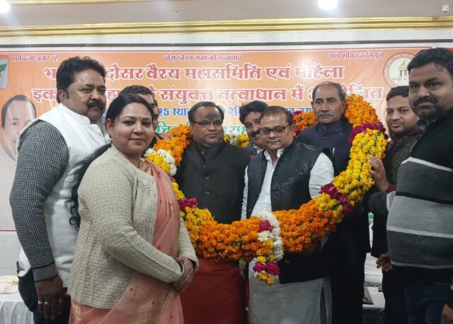 FATEHPUR NEWS: दोसर वैश्य महासमिति द्वारा रज्जन गेस्ट हाउस में सम्मान समारोह का आयोजन किया गया, जिसमें भारतीय जनता पार्टी के नवनियुक्त जिला अध्यक्ष अन्नू श्रीवास्तव का फूल-मालाओं से भव्य स्वागत किया गया। कार्यक्रम में जनपद के विभिन्न क्षेत्रों से समाज के लोगों ने बड़ी संख्या में सहभागिता की।