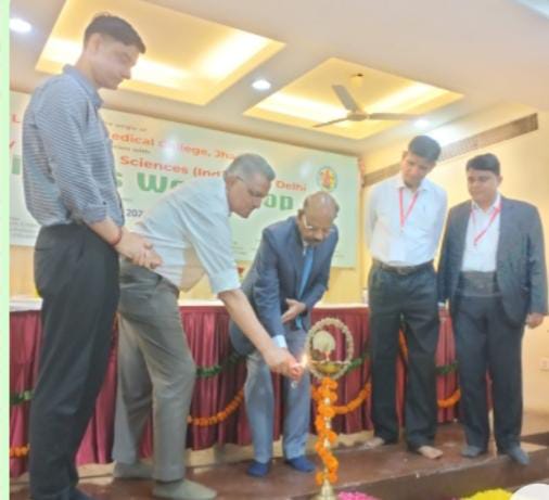 JHANSI NEWS: प्रथम दिवस होटल शीला श्री प्लाजा में सतत् चिकित्सा शिक्षा के अन्तर्गत बायोस्टेटिक्स कार्यशाला नेशनल एकेडमी आफ मेडिकल साइंसेज (इंडिया) नई दिल्ली के निर्देशन पर बाल रोग विभाग, मेडिकल कालेज के तत्वावधान में डा० राजेन्द्र प्रसाद, डायरेक्टर, मेडिकल एजूकेशन, एवं प्रोफेसर एवं विभागाध्यक्ष, क्षयरोग विभाग, एराज मेडिकल कॉलेज, लखनऊ, के मुख्य आतिथ्य में, डा० एन० एस० सैंगर, प्रधानाचार्य एस० एन० मेडिकल कॉलेज आगरा के विशिष्ट आतिथ्य में, डा० मयंक सिंह प्रधानाचार्य म० ल० डा० मेडिकल कॉलेज, झांसी के संरक्षण में, डा० बी० एल० वर्मा के निर्देशन में एवं डा० ओम शंकर चौरसिया, विभागाध्यक्ष बालरोग विभाग म० ल० बा० मेडिकल कॉलेज के कार्यक्रम संयोजन में दीप प्रज्ज्वलित कर उदघाटन किया गया। मुख्य अतिथि डा० राजेन्द्र प्रसाद ने अपने सारगर्भित उदबोधन में कहा कि इस प्रकार की कार्यशाला आयोजित करने से एवं अपने आसपास के मेडिकल कॉलेज के चिकित्सकों एवं छात्रों को सम्मिलित करने से चिकित्सीय ज्ञान का परस्पर आदान – प्रदान होता है। उदघाटन समारोह के पश्चात मंचासीन अतिथियों एवं वरिष्ठ चिकित्सकों को स्मृति चिन्ह देकर सम्मानित किया गया।