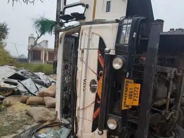 Home उत्तर प्रदेश धान से लदा ट्रक वैगन आर पर पलटा, दो युवकों की हुई...