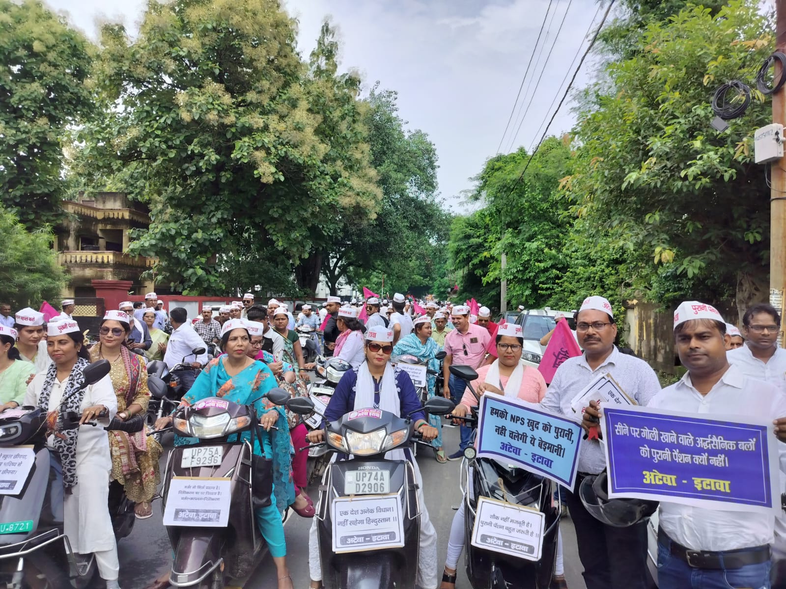 ETAWA NEWS: ऑल टीचर्स एण्ड इम्प्लाइज वेलफेयर एसोसिएशन (अटेवा) एवं नेशनल मूमेंट फ़ॉर ओल्ड पेंशन स्कीम के राष्ट्रीय अध्यक्ष विजय कुमार बन्धु के आव्हान पर नई पेंशन स्कीम/यूनिफाइड पेंशन स्कीम व स्कूल मर्जर के विरोध में रोष मार्च कर पूरे भारत देश के जिला मुख्यालयों पर जिलाधिकारी जी के माध्यम से माननीय माननीय प्रधानमंत्री/ मुख्यमंत्री को सम्बोधित ज्ञापन दिए जाने के क्रम जनपद इकाई अटेवा के जिलाध्यक्ष अजय यादव, की अगुवाई में जनपद इटावा के समस्त विभागों के संगठनो, पदाधिकारियों,व कर्मचारियों के समर्थन से विशाल मोटरसाइकिल/स्कूटी रैली का आयोजन डायट इटावा से प्रारम्भ होकर जनपद के प्रमुख चौराहो से होकर शहर का चक्कर लगाते हुए हाथ मे तख्ती बैनर झंडे टोपी लगाये गगनभेदी नारे लगाते हुए हज़ारों की संख्या में शिक्षक कर्मचारीयों ने जिलाधिकारी कार्यालय इटावा पहुँच कर ज्ञापन जिलाधिकारी के प्रतिनिधि उपजिलाधिकारी न्यायिक राकेश सिंह जी को सौंपा। जिला पर्यवेक्षक राजेश जादौन ने कहा एनपीएस और यूपीएस स्कीम कर्मचारियों के हित में नही है जब तक पुरानी पेंशन योजना नहीं मिलती संघर्ष जारी रहेगा। रैली की शुरुआत अटेवा संरक्षक उमाशंकर गुप्ता सिंचाई विभाग संरक्षक राकेश सक्सेना पीडब्ल्यूडी,सरंक्षक शिवपाल सिंह कुशवाह, माध्यमिक, राजीव यादव प्रदेश अध्यक्ष कर्म0शि0 वे0 एसो0 उत्तर प्रदेश के द्वारा सयुक्त रूप से हरी झंडी दिखाकर रवाना किया गया।कार्यक्रम में अरविंद्र प्रताप सिंह धनगर जिलाध्यक्ष, राज्य कर्मचारी संयुक्त परिषद डा0 धर्मेंद्र यादव स्वास्थ्य विभाग,धर्मेंद्र कुमार अध्यक्ष चतुर्थ श्रेणी संघ शिवशंकर, चन्द्रशेखर कृषि विभाग राजीव बाल्मीकि शिवमंगल दास भीमसिंह वीरेन्द्र कुमार मनोज कुमार पंचायत विभाग पूरन सिंह ग्राम विकास,राधेश्याम ग्रा0 0प0अ0 प्रवीण पांडे पीडब्ल्यूडी शिवराम सिंह रामकुमार सुदीप कमल सिंचाई विभाग बेसिक शिक्षा विभाग से संजय दुबे, गौरव पाठक जूनियर शिक्षक संघ जितेंद्र त्रिपाठी देश दीपक तिवारी राष्ट्रीय शैक्षिक महासंघ संजीव यादव प्राथमिक शिक्षक संघ सर्वजीत सिंह भदौरिया प्रशिक्षित स्नातक संघ मंगेश यादव वी बीटीसी संघ कामना सिंह महिला शिक्षक संघ शशिभूषण यादव टीचर्स क्लब संजीव यादव अंतर्जनपदीय संघ शिवराम सिंह एससी/एसटी संघ शौकीन सिंह tsct संघ रविन्द्र गुप्ता यूटा रामविलास यादव सेवानिवृत्त शिक्षक संघ अनूप यादव लेखपाल संघ रणविजय यादव (एकजुट) पंकज चौहान माध्यमिक शिक्षक संघ उपेन्द्र यादव समाजवादी शिक्षक सभा रमेश चन्द्र मिश्रा माध्यमिक संघ राजू सिंह रेलवे विभाग महेंद्र यादव बेसिक शिक्षक संघ विकास यादव अनुदेशक संघ वीरेंद्र सिंह वर्मा शिक्षामित्र संघ डॉ एम पी सिंह व संघर्ष समि