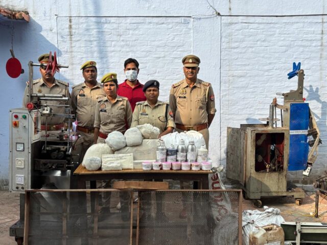BALRAMPUR NEWS: (प्रातःकाल एक्सप्रेस ब्यूरो बलरामपुर) मंगलवार को वादी गौरव दुबे पुत्र शिशु कुमार दुबे (डिस्ट्रीब्यूटर कमला पसन्द) निवासी मोहल्ला खलवा थाना को0नगर जनपद बलरामपुर के प्रार्थना पत्र कि विपक्षी द्वारा कमला पसन्द पान मसाला नामक गुटखे का नकली व्यापार करने के सम्बन्ध में थाना कोतवाली नगर पर मु0अ0सं0 227/2025 धारा 63, 64, 65 कॉपीराइट एक्ट व 318(4) 274, 238 बीएनएस बनाम इकरामुदीन पुत्र शमसुल्ला निवासी भगौतीगंज कोतवाली नगर जनपद बलरामपुर पंजीकृत किया गया था। मंगलवार को थाना कोतवाली नगर जनपद बलरामपुर टीम द्वारा उपरोक्त अभियोग से सम्बन्धित प्रकाश में आये अभियुक्त को नकली पान मसाला व तम्बाकू बनाने वाली फैक्ट्री के उपकरणों (02 अदद इलेक्ट्रिक कन्ट्रोल (पैंकिंग मशीन), 01 अदद सुपारी कटर मशीन मय मोटर, 01 अदद बैण्ड Continous Sealer Machine, 01 अदद सिलाई मशीन(बोरा सिलने वाली), 01 अदद इलेक्ट्रिक तराजू, 03 अदद चलनी(02 बड़ी व 01 छोटी), 01 लीटर डिब्बे मे चन्दन खुश्बू कम्पाउण्ड आधा लीटर भरा, 02 लीटर डिब्बे मे गुलाब खुश्बू कम्पाउण्ड, 01 लीटर डिब्बे मे केवड़ा कम्पाउण्ड, 01 लीटर डिब्बे मे किमाम कम्पाउण्ड आधा लीटर भरा, 10 लीटर जरकीन मे पैराफीन ऑयल 07 लीटर भरा, 01 बोरा कमलापसन्द रैपर, 01 बोरा सुपारी कचरा,01 बोरा जला हुआ कमलापसन्द रैपर व मिश्रित कच्चा माल, पिपरामिन्ट 03 किग्रा0 सफेद प्लास्टिक मे, 20 पैकेट नकली कमला पसन्द पान मसाला व 20 पैकेट नकली कमला पसन्द डबल ब्लैक जर्दा(तम्बाकू) के साथ अभियुक्त विपिन पाठक पुत्र सर्वजीत पाठक निवासी हमजापुरा थाना दरगाह शरीफ जनपद बहराइच को दरगाह शरीफ थाने के पास से उसके गोदाम से गिरफ्तार कर तथा नकली उत्पाद बनाने वाले उपकरणो को कब्जा पुलिस में लेकर विधिक कार्यवाही करते हुए मा0 न्यायालय रवाना किया जा रहा है । विदित है कि मुकदमा उपरोक्त से दिनांक 06.09.2025 को थाना को0 नगर पुलिस तथा एस.ओ.जी. टीम द्वारा मु0अ0सं0 227/2025 धारा 63,64,65 कॉपीराइट एक्ट व 318(4) 274,238 बीएनएस अभियोग से सम्बन्धित नामित अभियुक्त इकरामुदीन पुत्र शमसुल्ला निवासी भगौतीगंज कोतवाली नगर जनपद बलरामपुर को अभियुक्त के घर माल गोदाम रोड निकट भगवतीगंज बलरामपुर स्टेशन के पास छापेमारी करके नकली कमला पसन्द पान मसाला 07 बन्डल (210 पैकेट),नकली जर्दा-कमला पसन्द डबल ब्लैक-03 बन्डल (210 पैकेट), नकली लोहा अनिर्मित तम्बाकू-24 बन्डल(840 पैकेट),व नकली लोहा प्रीमियम पान सामाग्री-24 बन्डल (840 पैकेट) के साथ गिरफ्तार कर मा0 न्यायालय के समक्ष प्रस्तुत कर जेल भेजा गया था। अभियुक्त इकरामुदीन उपरोक्त ने पूछताछ में यह बताया कि मेरे द्वारा विपिन पाठक पुत्र सर्वजीत पाठक निवासी हमजापुरा थाना दरगाह शरीफ जनपद बहराइच से दरगाह शरीफ थाने के पास बने उसके गोदाम से लेता है।
