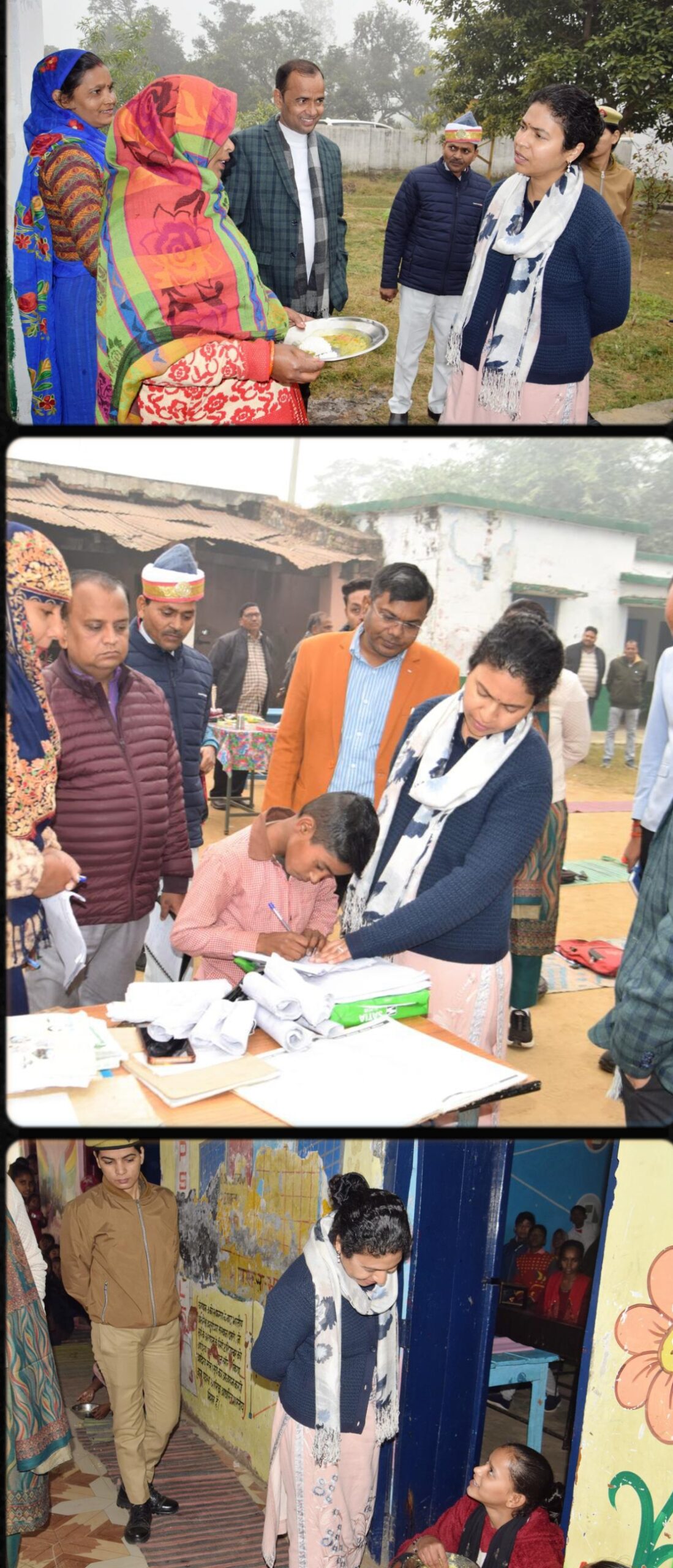 पीएस अमृतापुर में मध्यान भोजन की दाल परखी गई। डीएम ने पोषण बढ़ाने के लिए दाल में बथुआ डालने के निर्देश दिए और बच्चों की पढ़ाई जांची। पीएस अमृतागंज में बच्चे भोजन करते मिले। डीएम ने बच्चों को स्नेह दिया, भोजन वितरण की जानकारी ली और गणित की कॉपियां देखीं। डीएम ने छात्र रवि को बुलाकर जोड़-घटाना, गुणा और भाग के सवाल पूछे। डीएम ने शिक्षकों को निर्देश दिए कि कमजोर अधिगम स्तर वाले बच्चों पर विशेष ध्यान दिया जाए।