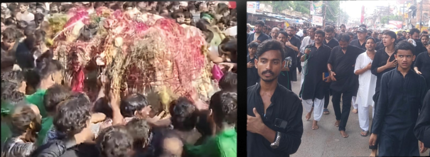 PRAYAGRAJ NEWS: इन्सानियत का पैग़ाम सारी दुनिया में फैलाकर करबला के मैदान में तीन दिन के भूखे प्यासे खानदाने रिसालत की शहादत यानि यौमे आशूरा पर हर तरफ ग़म की चादर और आंखों में आंसू लिए अक़ीदतमन्दों ने नंगे पैर इमामबाड़ों से करबला तक का पैदल सफर तय कर इमामबाड़ों में रखे ताज़िये और अलम ताबूत झूला व ज़ुलजनाह पर चढ़े फूलों को नम आंखों से सुपुर्द-ए-खाक किया।बख्शी बाज़ार इमामबाड़ा नज़ीर हुसैन से लगभग उन्नीस सौ अट्ठाईस (1928)में लड्डन मरहूम द्वारा क़ायम किया गया तुर्बत का क़दीमी जुलूस निकाला गया।मौलाना आमिरुर रिज़वी ने शहादत का मसायब पढ़ा। तुर्बत व अलम का जुलूस बख्शी बाज़ार ,दायरा शाह अजमल,रानी मण्डी ,बच्चा जी धर्मशाला तक ज़ैग़म अब्बास की मर्सिया ख्वानी करते हुए इमामबाड़ा मीर हुसैनी पहुंचा।इमामबाड़े में ज़ाकिरे अहलेबैत रज़ा अब्बास ज़ैदी ने ग़मगीन मसायब ए हुसैन पढ़े।बाद मजलिस अन्जुमन आबिदया के नौहाख्वान मिर्ज़ा काज़िम अली व वेज़ारत ने पुरदर्द नौहा पढ़ते हुए जुलूस को इमामबाड़े से बाहर लाकर डॉ चड्ढा रोड ,कोतवाली ,नखास कोहना , खुल्दाबाद , हिम्मतगंज होते हुए चकिया स्थित शिया करबला पर पहुंच कर सम्पन्न कराया वहीं दूसरा क़दीमी दुलदुल जुलूस इमामबारगाह मिर्ज़ा नक़ी बेग रानी मण्डी से बशीर हुसैन की सरपरस्ती में निकाला गया। अन्जुमन हैदरिया रानीमंडी के नौहाख्वान हसन रिज़वी व साथियों ने पुरदर्द नौहों की सदाओं के साथ जुलूस को अपने परम्परागत मार्गो से होते हुए चकिया करबला पहुंचे। दरियाबाद से आशूरा को निकाले गए जुलूस दरियाबाद स्थित क़ब्रिस्तान पहुंचे जहां अक़ीदत के फूलों व ताज़िये को दरगाह इमाम हुसैन के पास बने छोटे छोटे गड्ढों में सुपुर्द-ए-खाक किया गया।