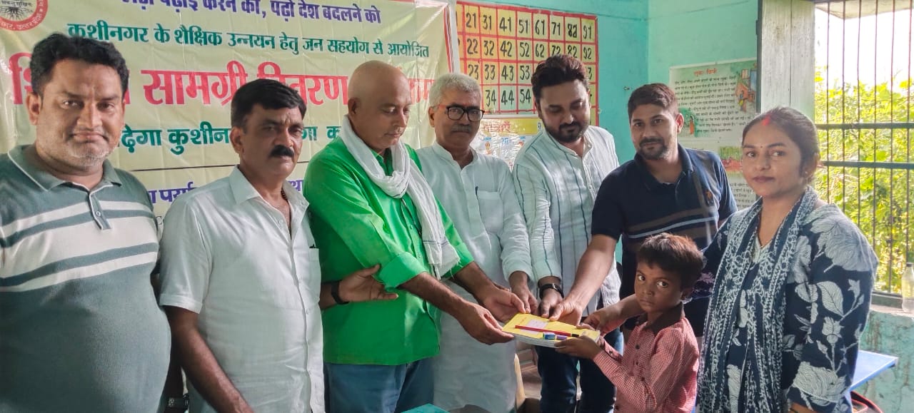 KUSHINAGAR NEWS: नयी दिशा पर्यावरण सेवा संस्थान द्वारा पढ़ेगा कुशीनगर, बढ़ेगा कुशीनगर की भावना के साथ जन सहयोग से चलाये जा रहे शिक्षण सामग्री वितरण कार्यक्रम के क्रम में बुधवार को हाटा विकास खण्ड स्थित प्राथमिक विद्यालय तमासपुर में विद्यार्थियों को कॉपी, कलम, पेंसिल, रबर, कटर, आदि शिक्षण सामग्री भेंट कर पढ़ने व आगे बढ़ने हेतु प्रोत्साहित किया गया।कार्यक्रम को सम्बोधित करते मुख्य अतिथि समाजिक कार्यकर्ता साहिल अहमद ने बच्चों से शिक्षण सामग्री का समुचित उपयोग कर मन लगाकर पढ़ने और देश व समाज का नाम रौशन करने की बात कही। क्षेत्र पंचायत सदस्य प्रतिनिधि जहांगीर खा वंचित बच्चों तक सामग्री पहुंचाने हेतु नयी दिशा के अभियान की सराहना की और संस्था से जुड़कर आगामी कार्यक्रमों में सहयोग का आश्वासन भी दिया। अध्यक्षता करते पूर्व शाखा प्रबंधक नरेंद्र नाथ तिवारी ने कहा कि नयी दिशा द्वारा जन सहयोग से आयोजित यह पहल सराहनीय है और समाज के सक्षम लोगों को संस्था की इस मुहिम में सहयोगी बनना चाहिए। कार्यक्रम को ग्राम प्रधान प्रतिनिधि बिजयकानत मिश्रा बिपिन सिंह आदि ने भी संबोधित किया। कार्यक्रम के आयोजन समिति के सदस्य शिक्षिका प्रिती पाल ने आये सभी अतिथियों का स्वागत किया। संचालन संस्था सचिव डाक्टर हरिओम मिश्रा ने किया। इस अवसर पर, प्रवीण राव, अमित सिंह, धीरज मिश्र, सुमित राय मुरली मनोहर, विपिन सिंह, रितेश सिंह आदि उपस्थित रहे।