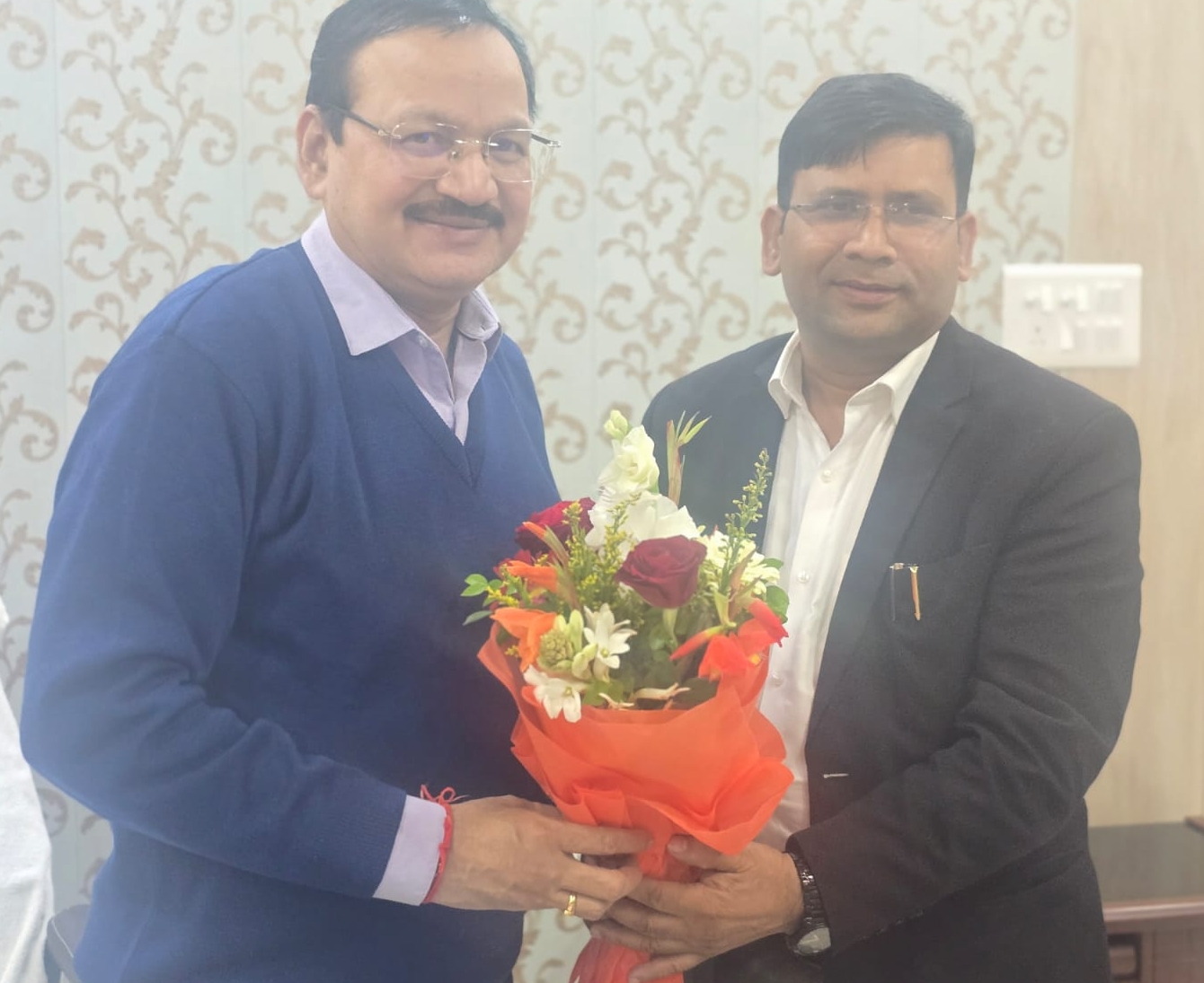 PRAYAGRAJ NEWS: प्रयागराज के नवनियुक्त जिला बेसिक शिक्षाधिकारी अनिल कुमार आज सचिव बेसिक शिक्षा परिषद उप्र प्रयागराज सुरेन्द्र कुमार तिवारी से मिले और बुके देकर स्वागत किया। इस दौरान सचिव बेसिक शिक्षा ने शिक्षण व्यवस्था, मुकदमों की स्थिति,एसआईआर सहित अन्य की जानकारी लिया। बीएसए अनिल कुमार ने जानकारी देते हुए बेहतर शिक्षण की बात कहीं।