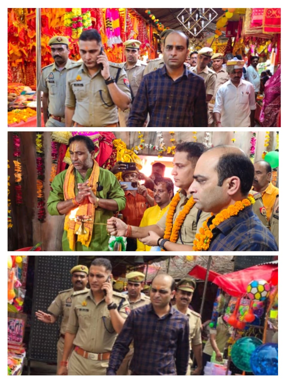 PRATAPGARH NEWS: जिल में नवरात्रि पर्व के अवसर पर डीएम शिव सहाय अवस्थी और एसपी दीपक भूकर ने थाना अंतू क्षेत्र में स्थित प्रसिद्ध मां चंडिका देवी का विधिपूर्वक दर्शन पूजा अर्चना कर मंदिर का निरीक्षण किया। इस दौरान उन्होंने श्रद्धालुओं की सुविधा और सुरक्षा सुनिश्चित करने के लिए पूरे मंदिर परिसर में सुरक्षा व्यवस्थाओं का विस्तृत जायजा लिया। ड्यूटी पर तैनात पुलिस कर्मियों को श्रद्धालुओं की सुरक्षा, भीड़ नियंत्रण, मार्गदर्शन और संपूर्ण व्यवस्था के सुचारू संचालन के लिए स्पष्ट, समग्र और प्रभावी दिशा-निर्देश प्रदान किए। इस पहल के माध्यम से नवरात्रि उत्सव के दौरान कानून एवं व्यवस्था बनाए रखने तथा श्रद्धालुओं को सुरक्षित एवं व्यवस्थित वातावरण प्रदान करने का संकल्प भी दोहराया गया। श्रद्धालुओं के लिए सुरक्षा और सुविधा सुनिश्चित करने में महत्वपूर्ण भूमिका निभाएगी। डीएम शिव सहाय अवस्थी और एसपी दीपक भूकर की यह पहल नवरात्रि उत्सव के दौरान श्रद्धालुओं की सुविधा और सुरक्षा सुनिश्चित करने के लिए एक महत्वपूर्ण कदम है। उनकी यह पहल श्रद्धालुओं के लिए एक सुरक्षित और व्यवस्थित वातावरण प्रदान करने में मदद करेगी।