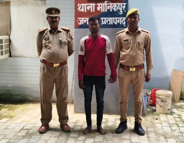 PRATAPGARH NEWS: 2 जुलाई 2025 को वादिनी निवासिनी थाना मानिकपुर क्षेत्रातंर्गत की प्राप्त तहरीर के आधार पर  धारा 137(2), 65 (1) बी.एन.एस. व 3/4 पाक्सो एक्ट का अभियोग पंजीकृत किया गया है। पुलिस अधीक्षक, प्रतापगढ़ डॉ0 अनिल कुमार द्वारा अपराधिक क्रिया कलाप में संलिप्त अपराधियों के विरूद्ध चलाए जा रहे अभियान के क्रम में अपर पुलिस अधीक्षक पश्चिमी श्री संजय राय व क्षेत्राधिकारी कुण्डा अमरनाथ गुप्ता के पर्यवेक्षण में थाना मानिकपुर प्रभारी निरीक्षक दीप नारायण के नेतृत्व में उ0नि0 रामनारायण सिंह मय हमराह का संदीप पटेल व का0 रामलखन यादव द्वारा देखभाल क्षेत्र, तलाश वांछित, वारण्टी अभियुक्त व संदिग्ध व्यक्तियों, वाहनों की चेकिंग के दौरान मुखबिर की सूचना पर अभियोग उपरोक्त से सम्बन्धित 01 अभियुक्त अरूण कुमार निषाद पुत्र मक्खनलाल उम्र करीब 23 वर्ष निवासी ग्राम गोतनी थाना मानिकपुर प्रतापगढ़ को थानाक्षेत्र मानिकपुर के पाटीहार मोड के पास से गिरफ्तार किया गया।