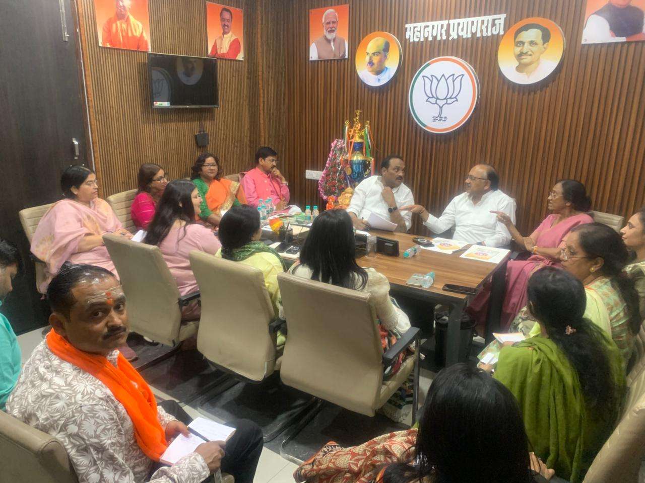 PRAYAGRAJ NEWS: नारी शक्ति वंदन अधिनियम अभियान के तहत होने वाले कार्यक्रमों को लेकर रविवार को सिविल लाइन स्थित भाजपा कार्यालय में भाजपा प्रयागराज महानगर अध्यक्ष संजय गुप्ता के नेतृत्व में बैठक का आयोजन किया गया। बैठक में कार्यक्रमों की रूपरेखा पर चर्चा की गई। महानगर अध्यक्ष संजय गुप्ता ने कहा कि ये जो भी कार्यक्रम आयोजित होने हैं उसे सफल बनाने में कोई कोर कसर न छोड़ी जाए। महिला मोर्चा व महिला कार्यकत्रियों की विशेष जिम्मेदारी है कि वे नारी शक्ति वंदन अधिनियम अभियान को सफल बनाएं। बैठक में नारी शक्ति सम्मेलन व पदयात्रा, हस्ताक्षर अभियान, बाइक/स्कूटी रैली, कला प्रदर्शनी एवं सांस्कृतिक कार्यक्रम, नारी शक्ति विजय दौड़, नारी शक्ति मार्च जैसे कार्यक्रमों के संयोजक सह संयोजक तय किए गए। इस दौरान पूर्व सांसद डॉ रीता बहुगुणा जोशी, अभिलाषा गुप्ता नंदी, कंचनलता कुशवाहा, शहर पश्चिमी विधायक सिद्धार्थ नाथ सिंह, कविता यादव त्रिपाठी, पार्षद किरन जायसवाल, दुर्गेश नंदिनी, वंदना सिंह, शिखा रस्तोगी, आनंद सोनकर, डॉ शैलेश पांडेय, आनंद श्रीवास्तव, विजय श्रीवास्तव, अजय सिंह, प्रमोद सिंह, अरुण पटेल, पवन श्रीवास्तव, विवेक मिश्रा, दीप द्विवेदी, शुभम सिंह, विश्वास श्रीवास्तव उपस्थित रहे।