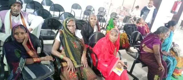 निशुल्क नेत्र शिविर में बांटी गयी दवाईयां, हुआ परीक्षण