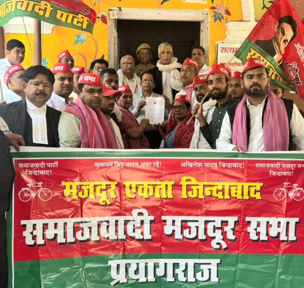 PRAYAGRAJ NEWS: नोएडा श्रमिक आंदोलन को स्वतः स्फूर्त श्रमिक आंदोलन बताते हुए सपा मजदूर सभा के प्रदेश अध्यक्ष धनीलाल श्रमिक ने आंदोलन कर रहे श्रमिकों के उत्पीड़न, जेल भेजे जाने एवं रासुका जैसी गंभीर धारायें लगाने के प्रशासन की तानाशाही करार देते हुए उनकी बिना शर्त रिहाई की मांग की है। आज़ जिला कचहरी मे स्थानीय सपा मजदूर सभा के पदाधिकारियों के प्रदर्शन का नेतृत्व करते हुए प्रदेश अध्यक्ष श्री धनीलाल ने कहा कि पूरे प्रदेश भर मे आज़ समाजवादी पार्टी की फ्रंटल इकाई मजदूर सभाद्वारा जिला मुख्यालय पर प्रदर्शन कर महामहिम राज्य पाल के नाम सम्बोधित ज्ञापन दिया गया है।