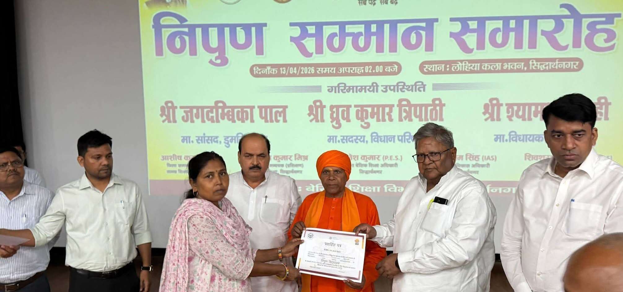 SIDHARTHNAGAR NEWS: बेसिक शिक्षा विभाग द्वारा लोहिया कला भवन में आयोजित निपुण सम्मान समारोह में जनप्रतिनिधियों व अधिकारियों ने शिक्षकों को गुणवत्तापूर्ण शिक्षा के लिए प्रेरित किया। कार्यक्रम में विधायक ध्रुव कुमार त्रिपाठी ने कहा कि परिश्रम कभी व्यर्थ नहीं जाता और निरंतर प्रयास से विद्यालयों को निपुण बनाया जा सकता है। उन्होंने कहा कि शिक्षक ही समाज के निर्माता हैं तथा स्वस्थ प्रतिस्पर्धा से गुणात्मक प्रगति संभव है। उन्होंने कहा कि आज के बच्चे ही देश का भविष्य हैं, इसलिए उन्हें अच्छे संस्कारों के साथ गुणवत्तापूर्ण शिक्षा देना आवश्यक है। सभी शिक्षक योग्य हैं और उन्हें अपनी क्षमता का उपयोग बच्चों के बेहतर भविष्य के निर्माण में करना चाहिए। सांसद प्रतिनिधि एसपी अग्रवाल ने शिक्षकों को नामांकन बढ़ाने और अपने दायित्वों का निर्वहन पूरी निष्ठा से करने के लिए प्रेरित किया। मुख्य विकास अधिकारी ने अपने संबोधन में कहा कि वह स्वयं प्राथमिक विद्यालय से शिक्षित हैं और यदि शिक्षक संकल्प लें तो एक स्वस्थ व शिक्षित समाज का निर्माण संभव है। समारोह में जनपद के 533 विद्यालयों को निपुण सम्मान प्रमाण पत्र प्रदान कर सम्मानित किया गया। सदर विधायक श्यामधनी राही ने भी मजबूत राष्ट्र निर्माण में शिक्षकों की भूमिका पर जोर देते हुए बच्चों को शुभकामनाएं दीं। कार्यक्रम में जिला बेसिक शिक्षा अधिकारी द्वारा अतिथियों का स्वागत किया गया। इस दौरान एसआरजी अंशुमन सिंह ने निपुण विद्यालय बनाने की रणनीतियों पर प्रकाश डाला, जबकि अपूर्व श्रीवास्तव ने प्री-प्राइमरी व कक्षा एक के नवप्रवेशी बच्चों को विद्यालय के प्रति सहज बनाने में शिक्षकों की भूमिका स्पष्ट की। इस अवसर पर खंड शिक्षा अधिकारी रामु प्रसाद, महेंद्र प्रसाद, नीरज सिंह, धर्मेंद्र पाल, ओपी मिश्रा, जिला समन्वयक सुरेंद्र श्रीवास्तव, अमित पाण्डेय, अमित शुक्ला, करुणापति त्रिपाठी, आशीष कुमार सिंह, कार्तिकेय पांडे सहित एआरपी सत्येंद्र सिंह, मारुति नंदन व उत्कर्ष श्रीवास्तव सहित अनेक शिक्षक व अधिकारी उपस्थित रहे।