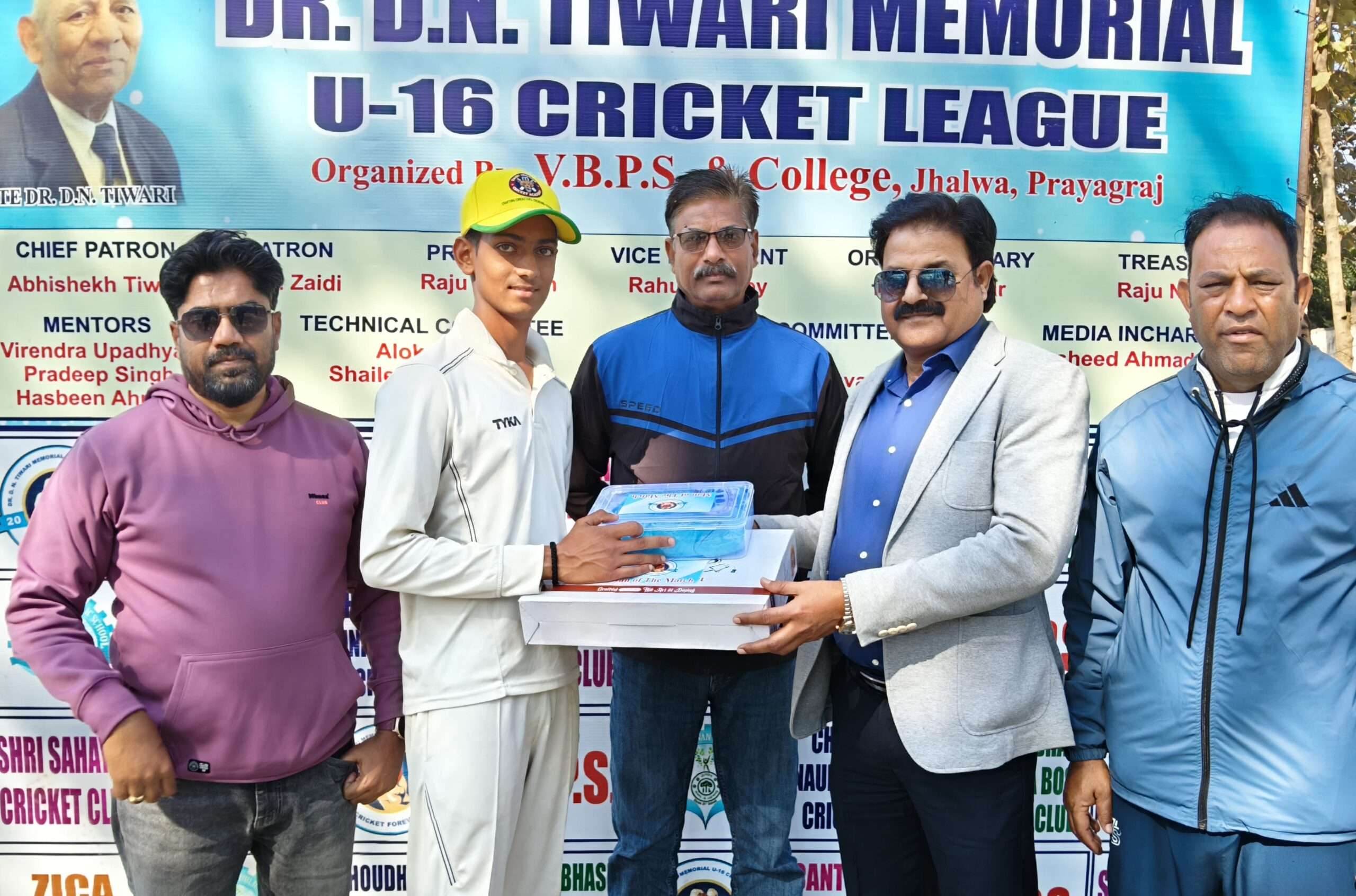 PRAYAGRAJ NEWS: जैदी इंडोर क्लब ने कैंटोनमेंट बोर्ड क्लब को रोमांचक मुकाबले में एक रन से हराकर डॉ. डीएन तिवारी स्मृति अंडर-16 क्रिकेट प्रतियोगिता में पूरे अंक प्राप्त किया। इस जीत में पीयूष कुमार के बहुमुखी प्रदर्शन (48 रन एवं तीन विकेट) की महत्वपूर्ण भूमिका रही। प्रतियोगिता में कैंटोनमेंट बोर्ड की यह लगातार चौथी हार रही। वहीं जैदी इंडोर क्लब ने चार मैच में पहली जीत दर्ज की। विष्णु भगवान पब्लिक स्कूल मैदान पर सोमवार को खेले गए मैच में टॉस हारकर जैदी इंडोर क्लब ने 30 ओवर में सात विकेट पर 193 रन (पीयूष कुमार 43, पीयूष मिश्रा 25, शाश्वत मित्र 22, शिवांश मिश्रा 21, मोहम्मद फैज 2/25, तनिष्क सोनकर 2/28, दीपक भारद्वाज 2/40) बनाए। जवाब में कैंटोनमेंट बोर्ड क्लब की टीम 30 ओवर में 9 विकेट पर 192 रन (अक्षत केसरवानी 58 नाबाद, शिवम यादव 37, आर्यन यादव 22, पीयूष कुमार 3/41, शिवांश मिश्रा 2/23, सृजन पटेल, अंश सिंह व पीयूष मिश्रा एक-एक विकेट) ही बना सकी। पीयूष कुमार को एनआईएस क्रिकेट कोच हसबीन अहमद ने मैन ऑफ द मैच का पुरस्कार दिया। आयोजन समिति के सदस्य वरिष्ठ क्रिकेटर आलोक सिंह ने मैन ऑफ द मैच का पुरस्कार दिया।
