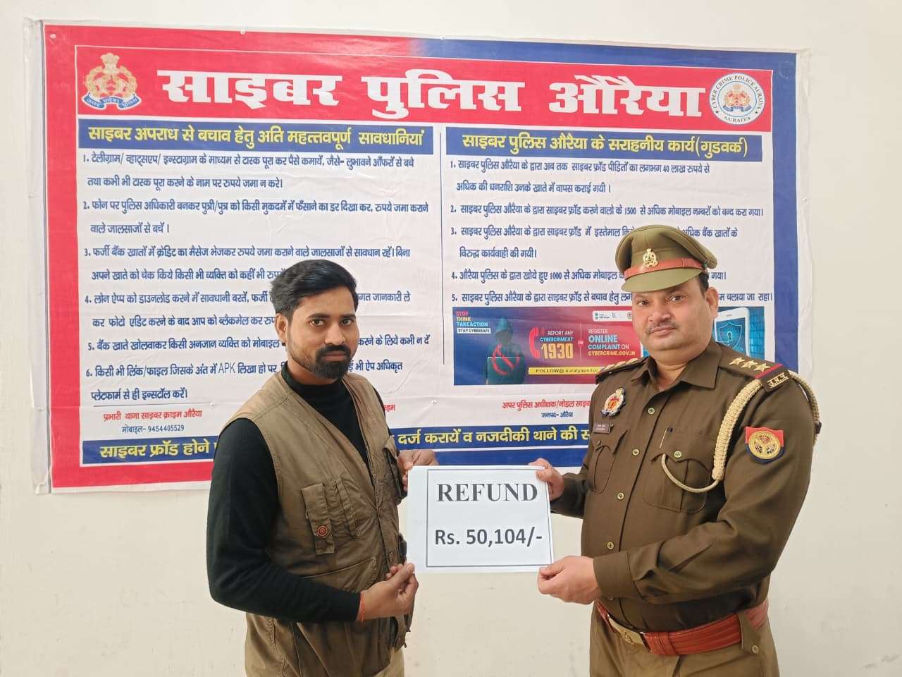 AURAIYA NEWS: जनपद में साइबर अपराधियों के विरुद्ध चलाए जा रहे अभियान के क्रम में अपराधियों द्वारा व्हाट्सएप लिंक भेजकर मोबाइल हैक करने और बैंक खातों से धनराशि निकालने के मामले लगातार सामने आ रहे हैं। इसी क्रम में साइबर सेल औरैया की त्वरित कार्रवाई से एक पीड़ित को बड़ी राहत मिली है। थाना दिवियापुर क्षेत्र के ग्राम पुरवा देवराय निवासी बुद्धेश्वर राव सिद्धार्थ के खाते से साइबर अपराधियों ने क्रेडिट कार्ड इंश्योरेंस बंद करने के नाम पर भेजे गए लिंक के माध्यम से 50,104 रुपये की ठगी कर ली थी। पीड़ित द्वारा साइबर क्राइम पोर्टल पर शिकायत दर्ज कराई गई थी। पुलिस अधीक्षक अभिषेक भारती के निर्देश पर अपर पुलिस अधीक्षक एवं नोडल साइबर क्राइम आलोक मिश्रा के पर्यवेक्षण तथा क्षेत्राधिकारी साइबर क्राइम पृथुयश पुनीत मिश्रा के निर्देशन में साइबर सेल/साइबर थाना औरैया ने मामले में तत्काल कार्रवाई की। त्वरित प्रयासों के परिणामस्वरूप पीड़ित के खाते से निकाली गई पूरी धनराशि 50,104 रुपये वापस करा दी गई। राशि वापस मिलने पर पीड़ित ने पुलिस अधीक्षक एवं साइबर सेल टीम की सराहना करते हुए आभार व्यक्त किया। पुलिस द्वारा आमजन से अपील की गई है कि किसी भी प्रकार के साइबर अपराध की स्थिति में गोल्डन ऑवर यानी एक घंटे के भीतर साइबर हेल्पलाइन नंबर 1930 या वेबसाइट पर शिकायत दर्ज कराएं। साथ ही नजदीकी थाने की साइबर हेल्पडेस्क के माध्यम से भी सहायता ली जा सकती है। साइबर सेल औरैया द्वारा कस्बों, गांवों, व्यापारिक संगठनों एवं शिक्षण संस्थानों में साइबर जागरूकता अभियान भी लगातार चलाया जा रहा है।