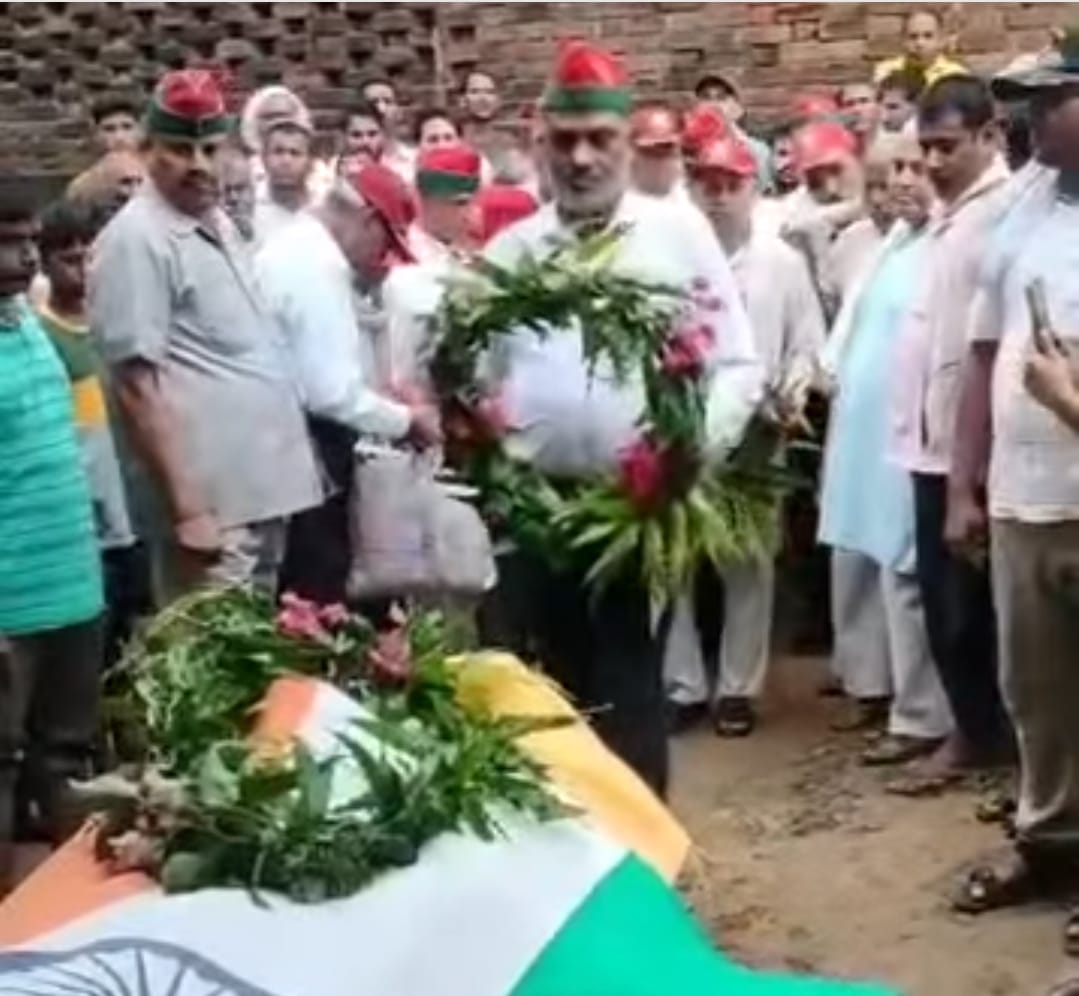 ETAWA NEWS: सैनिक प्रकोष्ठ टीम ने पूर्व सैनिक रघुवंशी लाल के निधन पर उन्हें श्रद्धांजलि दी। टीम के सदस्यों ने उनके ग्राम गढ़ी रामधन थाना क्षेत्र बलरई पहुंचकर उनके अंतिम संस्कार में भाग लिया और उन्हें तिरंगे के साथ सम्मान के साथ सलामी दी। सैनिक प्रकोष्ठ टीम ने पूर्व सैनिक रघुवंशी लाल की अंतिम यात्रा में शामिल होकर उन्हें श्रद्धांजलि अर्पित की। इस दौरान टीम के सदस्यों ने उनके परिजनों से मिलकर शोक संवेदना व्यक्त की और उन्हें ढांढस बंधाया। टीम के सदस्यों ने कहा कि पूर्व सैनिक रघुवंशी लाल ने देश की सेवा के लिए अपना जीवन समर्पित किया था और उनकी सेवाओं को कभी भुलाया नहीं जा सकता। टीम ने उनके योगदान को याद करते हुए उन्हें श्रद्धांजलि अर्पित की और उनके परिवार के प्रति संवेदना व्यक्त की। इस अवसर पर सैनिक प्रकोष्ठ कानपुर मंडल प्रभारी पूर्व सैनिक जयवीर सिंह यादव ने टीम के अनेक सदस्यों के साथ बड़ी संख्या में उपस्थित थे और उन्होंने पूर्व सैनिक रघुवंशी लाल को श्रद्धांजलि देने में भाग लिया।