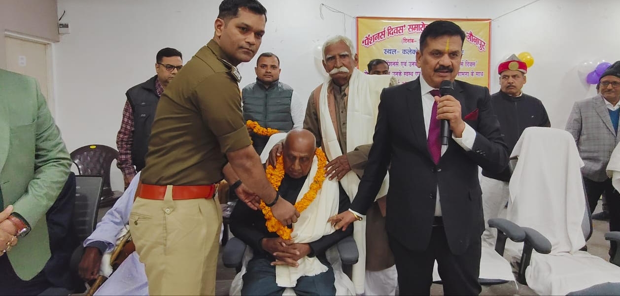 JAUNPUR NEWS: शासन के निर्देश के क्रम में मंगलवार को कलेक्ट्रेट स्थित प्रेक्षागृह में पेंशनर्स दिवस समारोह का आयोजन किया गया। कार्यक्रम की अध्यक्षता जिलाधिकारी डॉ. दिनेश चन्द्र ने की। समारोह में 80 वर्ष से अधिक आयु के अति वरिष्ठ पेंशनर्स को माला पहनाकर एवं अंगवस्त्रम भेंट कर सम्मानित किया गया। जिलाधिकारी ने 105 वर्षीय गोपीनाथ पाल, 95 वर्षीय भगवान प्रसाद श्रीवास्तव, 94 वर्षीय सेवानिवृत्त पुलिस अधिकारी अवध नारायण सिंह, 90 वर्षीय महाबली यादव, 84 वर्षीय बाबू राम सिंह, 83 वर्षीय उमा शंकर मिश्रा, 82 वर्षीय ठाकुरी, 82 वर्षीय विकास कुमार श्रीवास्तव सहित अन्य वरिष्ठ पेंशनर्स एवं पेंशनर्स संगठनों के पदाधिकारियों को सम्मानित किया। जिलाधिकारी ने सभी पेंशनर्स के स्वस्थ एवं सुखमय जीवन की कामना की। इस अवसर पर 94 वर्षीय श्री अवध नारायण सिंह को कार्यक्रम का अध्यक्ष नामित किया गया। जिलाधिकारी ने समस्त विभागाध्यक्षों को निर्देशित किया कि पेंशनर्स से संबंधित समस्याओं का संवेदनशीलता के साथ त्वरित निस्तारण सुनिश्चित किया जाए। उन्होंने कहा कि उत्तर प्रदेश सरकार पेंशनर्स की सेवाओं के प्रति कृतज्ञ है और मुख्यमंत्री श्री योगी आदित्यनाथ के स्पष्ट निर्देश हैं कि किसी भी पेंशनर को कार्यालयों के चक्कर न लगाने पड़ें। विशेष रूप से चिकित्सा प्रतिपूर्ति से जुड़े मामलों को लंबित न रखते हुए शीघ्र निस्तारित करने के निर्देश दिए गए।