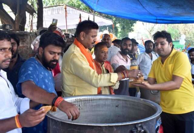 PRAYAGRAJ NEWS: हनुमान जन्मोत्सव के पावन अवसर पर निकट मेडिकल कॉलेज चौराहे पर विशाल भंडारे का आयोजन स्थानीय लोगों के द्वारा किया गया। जैसे प्रयागराज के महापौर गणेश केसरवानी ने भंडारे का उद्घाटन करते हुए कहा कि प्रसाद यानी प्रभु का साक्षात दर्शन होता है उन्होंने सभी भक्तों से यथाशक्ति भंडारे का आयोजन कर प्रसाद का वितरण करना चाहिए क्योंकि एक दूसरे से अपने संबंध बनाने का एक सशक्त मार्ग भी है। उक्त अवसर पर पूर्व पार्षद प्रवक्ता भारतीय जनता पार्टी पवन श्रीवास्तव, पार्षद रितेश मिश्रा, पार्षद आशीष द्विवेदी, आशा देवी, भोला सिंह, विकास गुप्ता, सुरेश कुशवाहा, अजय कुमार विश्वकर्मा, राज नारायणयादव, सतीश साहू, राजा यादव, दिलीप कुमार, अवधेश शुक्ला, रंजीत राहुल, अमरनाथ, अंकित, मनोज, शैलेश, अब्दुल आदिल सहित अनेक भक्तों ने प्रसाद ग्रहण किया।