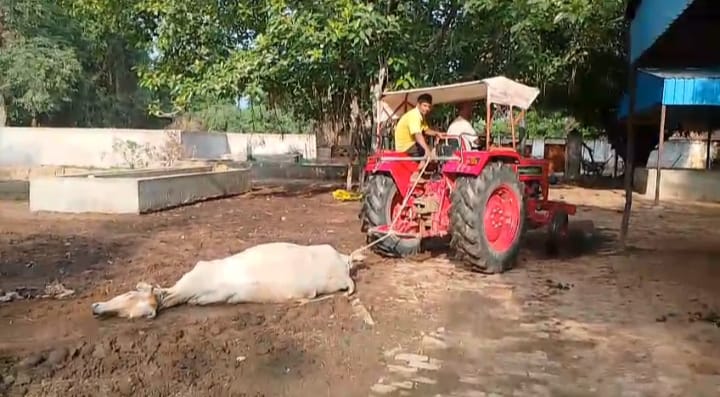 मृत गौवंश को ट्रैक्टर से खींचने की घटना में सचिव निलंबित