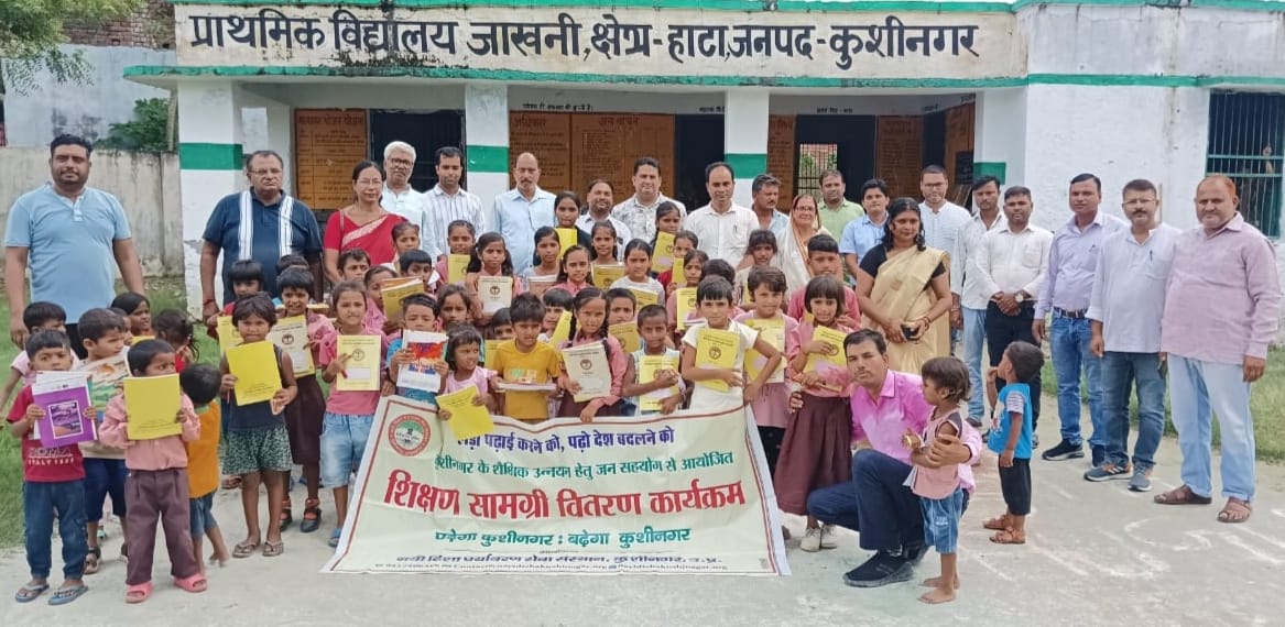 KUSHINAGAR NEWS: नयी दिशा पर्यावरण सेवा संस्थान द्वारा पढ़ेगा कुशीनगर, बढ़ेगा कुशीनगर की भावना के साथ जन सहयोग से चलाये जा रहे शिक्षण सामग्री वितरण कार्यक्रम के क्रम में मंगलवार को वरिष्ठ पत्रकार त्रिलोकी नाथ श्रीवास्तव, वनस्पति विज्ञान की आचार्य डॉ0 वीना कुमारी, पत्रकार सतीश सिंह, नयी दिशा सचिव डॉ0 हरिओम मिश्र के जन्मदिन के अवसर पर हाटा विकास खण्ड स्थित प्राथमिक विद्यालय जाखनी में विद्यार्थियों को कॉपी, पेंसिल, रबर, कटर आदि शिक्षण सामग्री भेंट कर पढ़ने व आगे बढ़ने हेतु प्रोत्साहित किया गया। इस दौरान पौधरोपण संग जन्मोत्सव अभियान के अंतर्गत विद्यालय परिसर में बरगद, हरसिंगार, चांदनी, कनेर, गुड़हल आदि पौधों का रोपण भी हुआ। संचालन संस्था सचिव डॉ0 हरिओम मिश्र एवं अतिथियों का स्वागत व आभार प्रधानाध्यापिका पद्मावती सिंह ने किया। इस अवसर पर प्रधान प्रतिनिधि विजयकांत मिश्र, नरेंद्र नाथ त्रिपाठी, इंद्र कुमार मिश्र, त्रिलोक चंद्र गुप्ता, अनिता राय, अनिल तिवारी, प्रवीण राव, अमित सिंह, राजू कुमार, रितेश सिंह, धीरज मिश्र, सुमित राय, मुरली मनोहर, हरगोविंद राव, नीतीश गौड़, अजरा खातून, दीनानाथ प्रसाद, दुर्गावती देवी, सुनीता देवी आदि उपस्थित रहे।