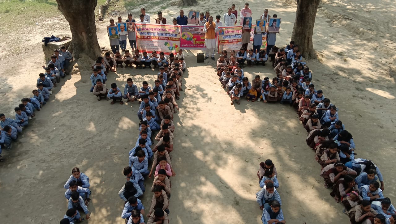 FATEHPUR NEWS: जनपद (फतेहपुर) स्थापना दिवस के अवसर पर खागा तहसील के गुरसंडी गांव स्थित निष्पक्ष देव विद्या मंदिर इंटर कॉलेज में विशेष कार्यक्रम आयोजित किया गया। कार्यक्रम में विद्यार्थियों ने बुंदेलखंड राष्ट्र समिति के राष्ट्रीय अध्यक्ष प्रवीण पांडेय बुंदेलखंडी के नेतृत्व में मानव श्रृंखला बनाकर 199 लिखा और जिले की ऐतिहासिक एवं सांस्कृतिक धरोहरों को सहेजने का संकल्प लिया।
