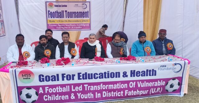FATEHPUR NEWS: फतेहपुर स्पोर्ट्स स्टेडियम में मानव सेवा संस्थान एवं फीफा फाउंडेशन के संयुक्त तत्वावधान में आयोजित जनपद स्तरीय फुटबॉल टूर्नामेंट का उद्घाटन किया गया। उद्घाटन सत्र में मुख्य अतिथि नगर पालिका परिषद फतेहपुर के अध्यक्ष एडवोकेट राजकुमार मौर्य ने खिलाड़ियों को संबोधित करते हुए कहा कि आज की युवा पीढ़ी को अपने सपनों को साकार करने के लिए निरंतर एक लक्ष्य की ओर बढ़ते रहना चाहिए। उन्होंने कहा कि चाहे लक्ष्य किसी पद या प्रतिष्ठा की प्राप्ति हो या खेल के मैदान में खुद को सर्वश्रेष्ठ साबित करने का, मजबूत इरादों के बिना कोई भी उद्देश्य हासिल नहीं किया जा सकता। इससे पूर्व जिला खेल संघ के अध्यक्ष भगवती प्रसाद पांडेय ने फुटबॉल को शारीरिक क्षमताओं को बढ़ाने वाला जोशीला खेल बताते हुए कहा कि खेल हमें नेतृत्व क्षमता, अनुशासन और टीम भावना सिखाते हैं। उन्होंने कहा कि खेल के माध्यम से अनुशासन में रहकर विरोधी टीम को पराजित करने की प्रेरणा मिलती है। टूर्नामेंट के उद्घाटन दिवस पर चार फुटबॉल टीमों के बीच मुकाबले खेले गए। इसमें सर्वोदय फुटबॉल क्लब ने राहुल फुटबॉल क्लब को 2–0 से हराकर जीत दर्ज की। वहीं फतेहपुर स्पोर्टिंग की टीम ने सार्थक फुटबॉल क्लब को 3–0 से पराजित कर सेमीफाइनल में प्रवेश किया। आयोजकों के अनुसार टूर्नामेंट के अगले चरण में गुरुवार को चार और टीमें मुकाबला करेंगी, जबकि 26 दिसंबर को टूर्नामेंट का फाइनल मैच खेला जाएगा। उद्घाटन सत्र के दौरान पूर्व सभासद धीरज कुमार, फतेहपुर व्यापार मंडल के अध्यक्ष बृजेश सोनी, जनकल्याण महासमिति से आदर्श मिश्रा, मानव विकास संस्थान से प्रदीप कुमार पांडे सहित सुरेश श्रीवास्तव एवं अन्य सामाजिक कार्यकर्ता उपस्थित रहे।