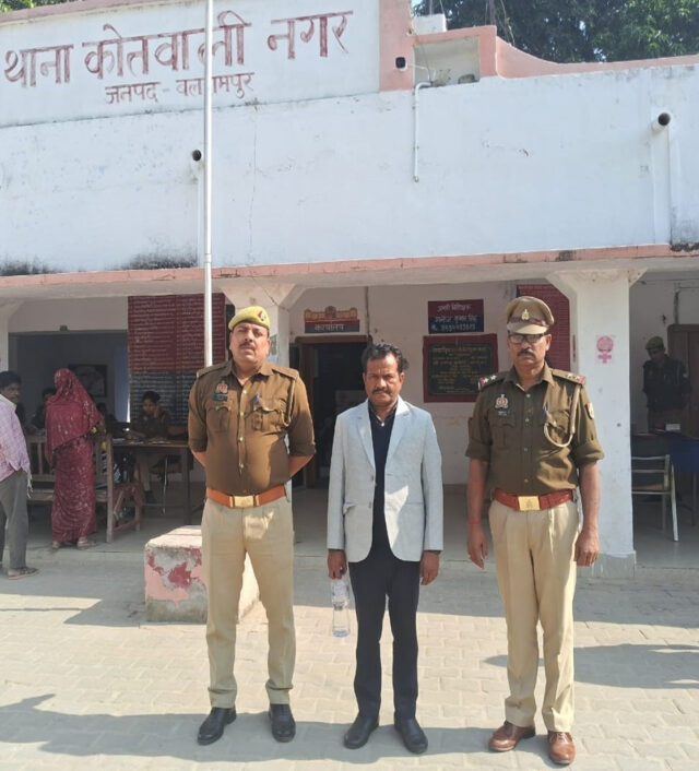 BALRAMPUR NEWS:  कमाल खान (ब्यूरो प्रमुख) घटना का संक्षिप्त विवरण –दिनांक 11.11.25 को उ0नि0 शिवम सिंह ने थाना को0 नगर जनपद बलरामपुर की लिखित तहरीरी सूचना दिया कि गैंगेस्टर एक्ट के अभियुक्त द्वारा जमानत पर रिहा होकर गाटा सं0 की भूमि का कूट रचित दस्तावेज तैयार कर बैंक में ऋण लेकर बन्धक होने के सम्बन्ध में दी गई प्राप्त सूचना के आधार पर थाना कोतवाली नगर पर मु0अ0सं0 285/2025 धारा  336(3)/338/340(2) बी0एन0एस0 पंजीकृत किया गया। पुलिस अधीक्षक बलरामपुर विकास कुमार के कुशल निर्देशन में अपर पुलिस अधीक्षक विशाल पाण्डेय व क्षेत्राधिकारी नगर ज्योति श्री के पर्यवेक्षण में तथा प्रभारी निरीक्षक मनोज कुमार सिंह थाना को0 नगर एवं टीम के कुशल नेतृत्व में दिनांक- 12.11.25 को थाना कोतवाली नगर जनपद बलरामपुर द्वारा मु0अ0सं0 285/25 धारा 336(3)/338/340(2) बी0एन0एस0 मे वांछित अभियुक्त नारायन शुक्ला उर्फ पिन्टू शुक्ला  पुत्र त्रिलोकीनाथ शुक्ला नि0  पुरानी बाजार कस्बा व थाना तुलसीपुर जनपद बलरामपुर स्थायी पता ग्राम गोदहना थाना गौरा चौराहा जनपद बलरामपुर को नहरबालागंज पुलिया से गिरफ्तार कर मा0 न्यायालय रवाना किया गया।