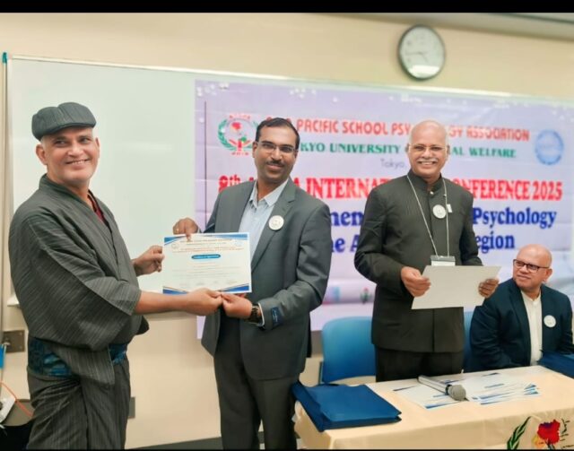 KUSHINAGAR NEWS: साहित्यकार एवं अग्रहार संस्था के अध्यक्ष अवकाश प्राप्त सार्जेंट अभिमन्यु पाण्डेय ‘मन्नू’ को जापान के टोक्यो यूनिवर्सिटी ऑफ सोशल वेलफेयर में आयोजित एशिया पैसेफिक स्कूल साइकोलॉजी एसोसिएशन के आठवें अंतरराष्ट्रीय कांफ्रेंस में सम्मानित किया गया। उन्होंने स्कूल मनोविज्ञान में डिजिटल उपकरणों और तकनीक का एकीकरण : 21वीं सदी के विद्यार्थियों के लिए मानसिक स्वास्थ्य समर्थन में नवाचार विषय पर शोध प्रस्तुति दी।