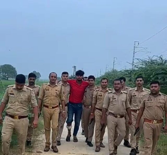 फायरिंग एंव पथराव की घटना मे संलिप्त  वांछित अभियुक्त को पुलिस मुठभेड़ मे गिरफ्तार