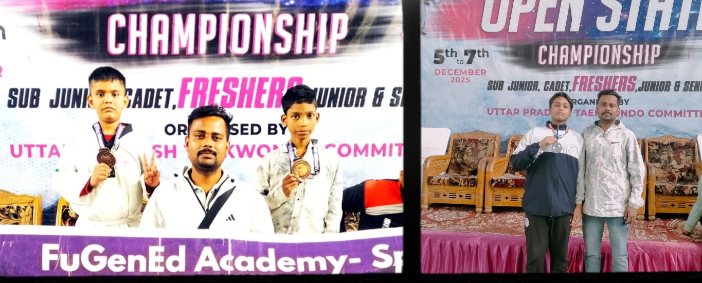 PRAYAGRAJ NEWS: फ़्यूजेनएड स्पोर्ट्स अकादमी प्रयागराज के खिलाड़ियों ने उत्तर प्रदेश ओपन राज्य ताइक्वांडो चैम्पियनशिप में  बेहतरीन प्रदर्शन करते हुए एक रजत एवं दो कांस्य पदक प्राप्त किये। फ़्यूजेनएड स्पोर्ट्स अकादमी अपने चेयरमैन मोहम्मद तल्हा हनफ़ी के अनुसार कानपुर के ग्रीन पार्क स्टेडियम में 5 से 7 दिसम्बर तक आयोजित चैंपियनशिप में अकादमी के इब्राहिम ने रजत और रामजी एवं नज़र ने कांस्य पदक प्राप्त किया। अकादमी के टीम के कोच अभिलाष कुमार रहे।