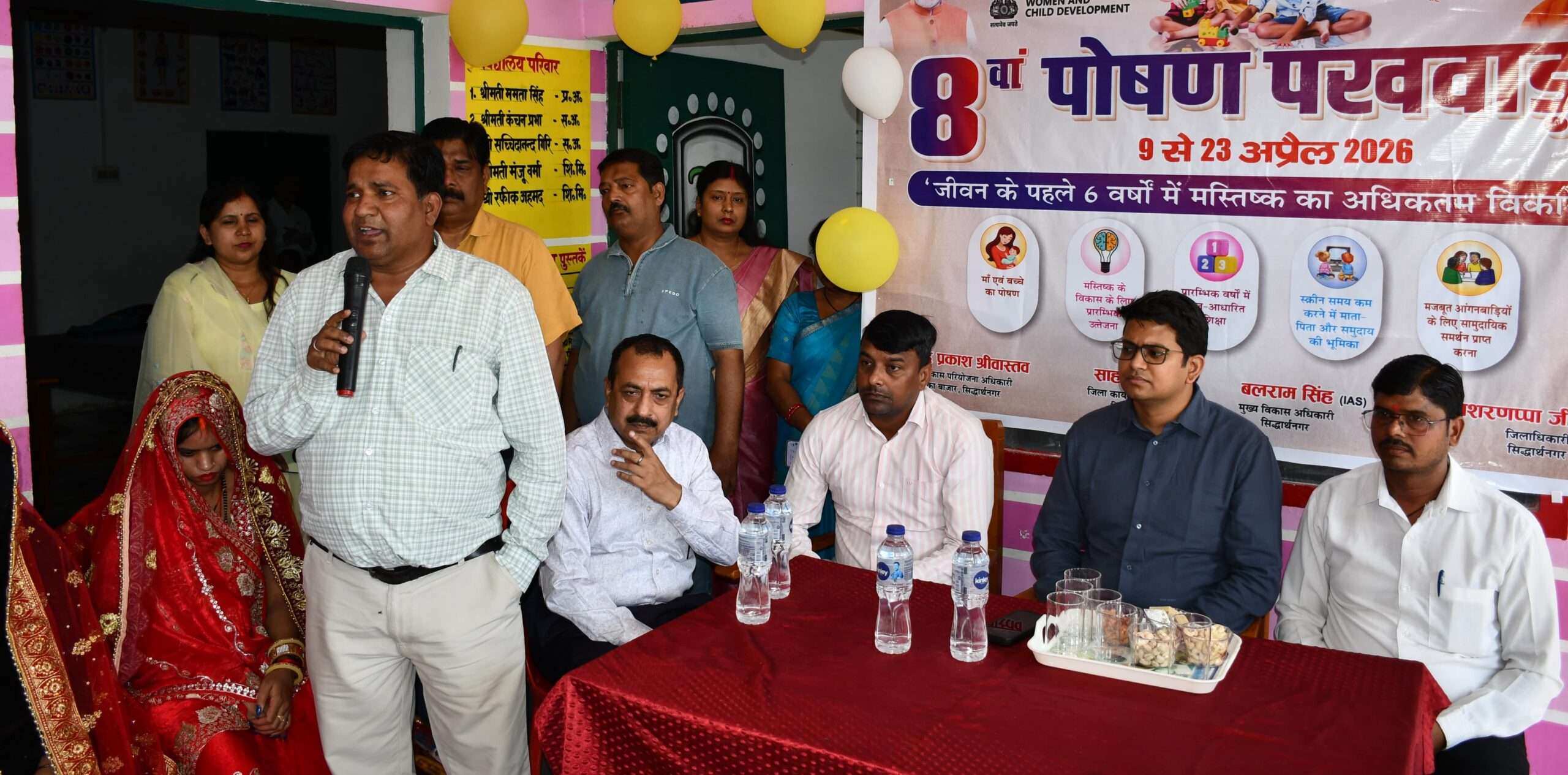 SIDHARTHNAGAR NEWS: जनपद में 8वें पोषण पखवाड़ा (9 से 23 अप्रैल 2026) का शुभारंभ प्राथमिक विद्यालय, उसका राजा, विकास खंड उसका बाजार में जिलाधिकारी शिवशरणप्पा जीएन की अध्यक्षता में किया गया। यह अभियान 23 अप्रैल तक विभिन्न गतिविधियों के साथ संचालित किया जाएगा। कार्यक्रम को संबोधित करते हुए जिलाधिकारी ने कहा कि बच्चे के जीवन के शुरुआती 6 वर्ष अत्यंत महत्वपूर्ण होते हैं, क्योंकि इसी अवधि में मस्तिष्क का लगभग 80 से 85 प्रतिशत विकास होता है। इस दौरान यदि बच्चों को समुचित पोषण, देखभाल और प्रारंभिक शिक्षा मिलती है, तो उनके समग्र विकास की मजबूत नींव रखी जा सकती है। उन्होंने कहा कि कुपोषण न केवल शारीरिक विकास को प्रभावित करता है, बल्कि मानसिक एवं बौद्धिक विकास पर भी प्रतिकूल असर डालता है। जिलाधिकारी ने आंगनबाड़ी कार्यकर्ताओं को निर्देशित किया कि वे घर-घर जाकर लोगों को पोषण के प्रति जागरूक करें तथा यह सुनिश्चित करें कि कोई भी बच्चा कुपोषण का शिकार न हो। उन्होंने जोर देकर कहा कि पोषण पखवाड़ा केवल एक सरकारी अभियान नहीं, बल्कि जनभागीदारी से चलने वाला एक महत्वपूर्ण जनआंदोलन है। कार्यक्रम के दौरान आंगनबाड़ी केंद्रों पर पोषण से जुड़ी विभिन्न गतिविधियां आयोजित की गईं। गर्भवती महिलाओं, धात्री माताओं एवं बच्चों को संतुलित आहार, टीकाकरण, स्वच्छता और स्तनपान के महत्व के बारे में विस्तार से जानकारी दी गई। साथ ही स्थानीय स्तर पर उपलब्ध पोषक तत्वों से भरपूर आहार बनाने की विधियां भी प्रदर्शित की गईं। पोषण पखवाड़ा के अंतर्गत जागरूकता रैली भी निकाली गई। इस अवसर पर जिला कार्यक्रम अधिकारी साहब यादव, सीडीपीओ उसका बाजार आनंद श्रीवास्तव, आंगनबाड़ी कार्यकत्रियां तथा विभिन्न विभागों के अधिकारी एवं कर्मचारी उपस्थित रहे।