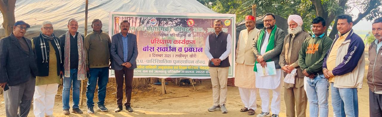 LAKHIMPUR KHERI NEWS: भारतीय कृषि एवं वानिकी क्षेत्र में बांस की खेती को लेकर बढ़ते रुझान को ध्यान में रखते हुए भा.वा.अ.शि.प.–पारिस्थितिक पुनर्स्थापन केन्द्र, प्रयागराज द्वारा विज्ञान एवं प्रौद्योगिकी परिषद, उत्तर प्रदेश द्वारा पोषित परियोजना के अंतर्गत बांस संवर्धन एवं प्रबंधन विषय पर एक दिवसीय प्रशिक्षण कार्यक्रम का आयोजन किया गया। यह कार्यक्रम बांकेगंज में यदुनंदन सिंह पुजारी जी के पुजारी फ़ार्म पर सम्पन्न हुआ। कार्यक्रम में प्रतिभागी किसानों को बांस की खेती, उत्पादन, प्रबंधन और बाजार की संभावनाओं से संबंधित विस्तृत तकनीकी जानकारी प्रदान की गई।कार्यक्रम के मुख्य अतिथि एवं केन्द्र प्रमुख डॉ. संजय सिंह ने अपने संबोधन में बताया कि उत्तर प्रदेश सरकार द्वारा बांस की खेती को बढ़ावा देने के लिए व्यापक योजनाएँ बनाई जा रही हैं, जिससे किसानों को बांस उत्पादन, बिक्री और मूल्य संवर्धन में सीधा लाभ मिल सके।