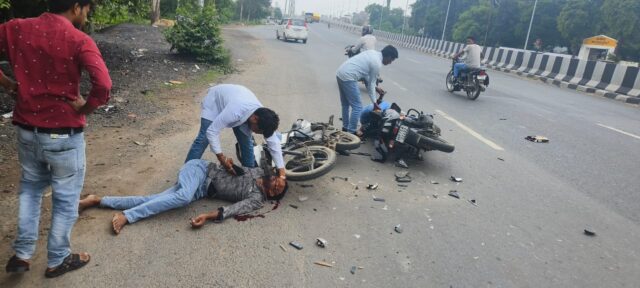ETAWA NEWS: राष्ट्रीय राजमार्ग पर बुधवार शाम करीब चार बजे सीएचसी के समीप फ्लाईओवर ब्रिज के पास सर्विस रोड पर दो बाइकों की आमने-सामने जोरदार भिड़ंत हो गई। हादसे में दोनों बाइक सवार गंभीर रूप से घायल हो गए।घायलों की पहचान 35 वर्षीय प्रद्युम्न कुमार ग्राम दशहरी निवासी और 22 वर्षीय सौरभ ग्राम कटखेरा निवासी के रूप में हुई है।टक्कर इतनी जोरदार थी कि दोनों युवक सड़क पर गिरकर लहूलुहान हो गए।सूचना पर पहुंचे एम्बुलेंस ईएमटी के धीरेंद्र प्रताप सिंह ने दोनों घायलों को सीएचसी पर इलाज के लिए भर्ती कराया।प्राथमिक उपचार के बाद चिकित्सकों ने उनकी गंभीर हालत को देखते हुए सैफई मेडिकल कॉलेज रेफर कर दिया।