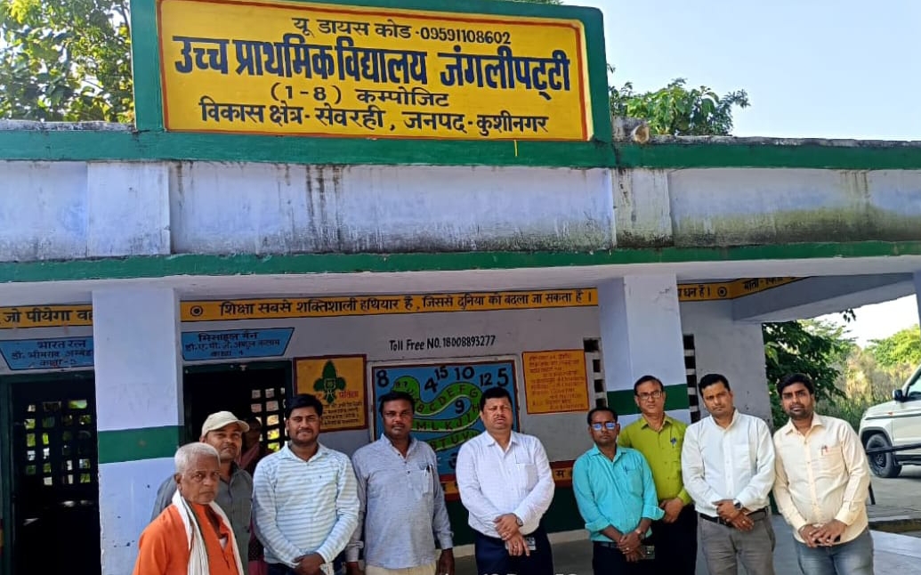 KUSHINAGAR NEWS: सेवरही विकासखंड के अंतर्गत कंपोजिट विद्यालय जंगली पट्टी में बृहस्पतिवार को जिला बेसिक शिक्षा अधिकारी डॉ. रामजियावन मौर्य ने औचक निरीक्षण किया। बीएसए सुबह 10 बजे विद्यालय पहुंचे और सबसे पहले ऑफिस में मौजूद पंजिका रजिस्टर की जांच की, जिसमें सभी अध्यापक उपस्थित पाए गए। इसके पश्चात उन्होंने कक्षा 1 से लेकर कक्षा 8 तक के कक्षों में जाकर बच्चों से संवाद किया और उनके शैक्षिक स्तर की जानकारी ली। बच्चों द्वारा उत्तर दिए जाने पर उन्होंने शिक्षकों के प्रयास की सराहना की। निरीक्षण के दौरान बीएसए ने मिड डे मील योजना के अंतर्गत मिलने वाले भोजन की व्यवस्था की जानकारी ली और विद्यालय परिसर की साफ-सफाई देखकर संतोष प्रकट किया। उन्होंने शिक्षकों से कहा कि बच्चों को गुणवत्तापूर्ण शिक्षा देना आप सभी का प्राथमिक कर्तव्य है। इसमें किसी भी प्रकार की लापरवाही बर्दाश्त नहीं की जाएगी। इस मौके पर मौजूद खंड शिक्षा अधिकारी (बीईओ) अमितेश कुमार ने कहा कि यह विद्यालय विकासखंड के श्रेष्ठ विद्यालयों में से एक है। यहाँ के बच्चे न केवल शैक्षिक रूप से सशक्त हैं, बल्कि उनका आचरण और अनुशासन भी प्रेरणादायक है। इसका श्रेय विद्यालय के शिक्षकों की सक्रियता और प्रतिबद्धता को जाता है।