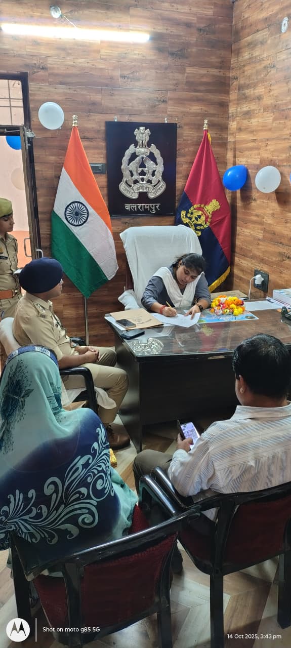 5. क्षेत्राधिकारी कार्यालय में नियुक्त कर्मचारी गण का परिचय कराया गया । 6. समस्त प्रभारी निरीक्षक एवं थानाध्यक्ष से वार्ता किया गया एवं उचित दिशा निर्देश दिए गए । 7. थाना तुलसीपुर में पंजीकृत मुकदमा अपराध संख्या 218/ 2025 में प्रभारी निरीक्षक/विवेचक को आवश्यक निर्देश दिया गया। 8. आवेदक रामनरेश पुत्र राम फकीरे नि ग्राम मोहनपुर थाना तुलसीपुर के दुर्घटना से संबंधित प्रार्थना पत्र में प्रभारी निरीक्षक तुलसीपुर को अभियोग पंजीकृत करने हेतु निर्देशित किया गया। 9. आवेदिका सुनीता पत्नी विजय निवासी ग्राम चौहत्तर कला थाना को० जरवा के भूमि संबंधी प्रकरण में  उपजिलाधिकारी तुलसीपुर से वार्ता कर टीम गठित कर अग्रिम कार्यवाही हेतु कहा गया। 10. महिला आरक्षी सुलोचना के पिता जी की तबियत खराब होने के कारण उक्त महिला आरक्षी को 07 दिवस का आकस्मिक अवकाश प्रदान किया गया। 11. महिला मुख्य आरक्षी श्रीमती शीलमति जो कि जनपद गोण्डा से स्थानांतरण पर जनपद बलरामपुर के थाना पचपेड़वा में नियुक्त हैं , के वर्दी भत्ता के प्रार्थना पत्र को श्रीमान पुलिस अधीक्षक महोदय बलरामपुर को अग्रसारित किया गया।