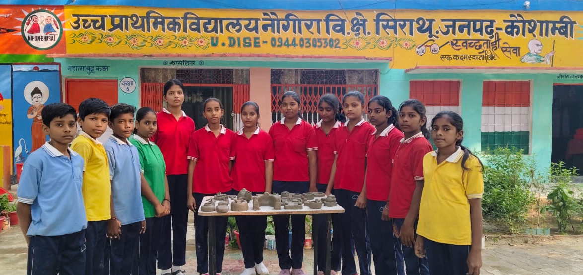 KAUSHAMBI NEWS: सिराथू के उच्च प्राथमिक विद्यालय नौगीरा में शनिवार को बच्चों ने बैग लेस डे कार्यक्रम के अंतर्गत मिट्टी से खिलौने बनाने की प्रक्रिया की सीखा। प्रधानाध्यापक विकास कुमार ने बताया कि नई शिक्षा नीति 2020 के अंतर्गत कक्षा 6 से 8 तक के बच्चों को बैग लेस डे के अंतर्गत साल में 10 गतिविधियों में से पहले गतिविधि के अनुसार शनिवार को बच्चों से मिट्टी के खिलौने बनाने का कार्य व निर्माण कराया गया। आज हुए इस कार्यक्रम में स्कूल के छात्र छवि कुशवाहा, अर्पिता देवी, गुड़िया देवी, खुशी देवी, आसमां, राज कश्यप, विमलेश ने प्रतिभाग किया। शिक्षक ने कहा कि बैग लेस डे से बच्चों के शिक्षण गतिविधियों में भी सहायता मिलती है। इन व्यावसायिक शिक्षा से मिट्टी से बने खिलौने, लकड़ी से बने फर्नीचर कार्य से बच्चों के अंदर आत्मनिर्भर बनने की क्षमता का विकास होता है। इसके अतिरिक्त बच्चों को इलेक्ट्रीशियन व मेकेनिकल आदि की जानकारी आद्योगिक कालेज का भ्रमण भी कराकर जानकारी दी जाएगी।