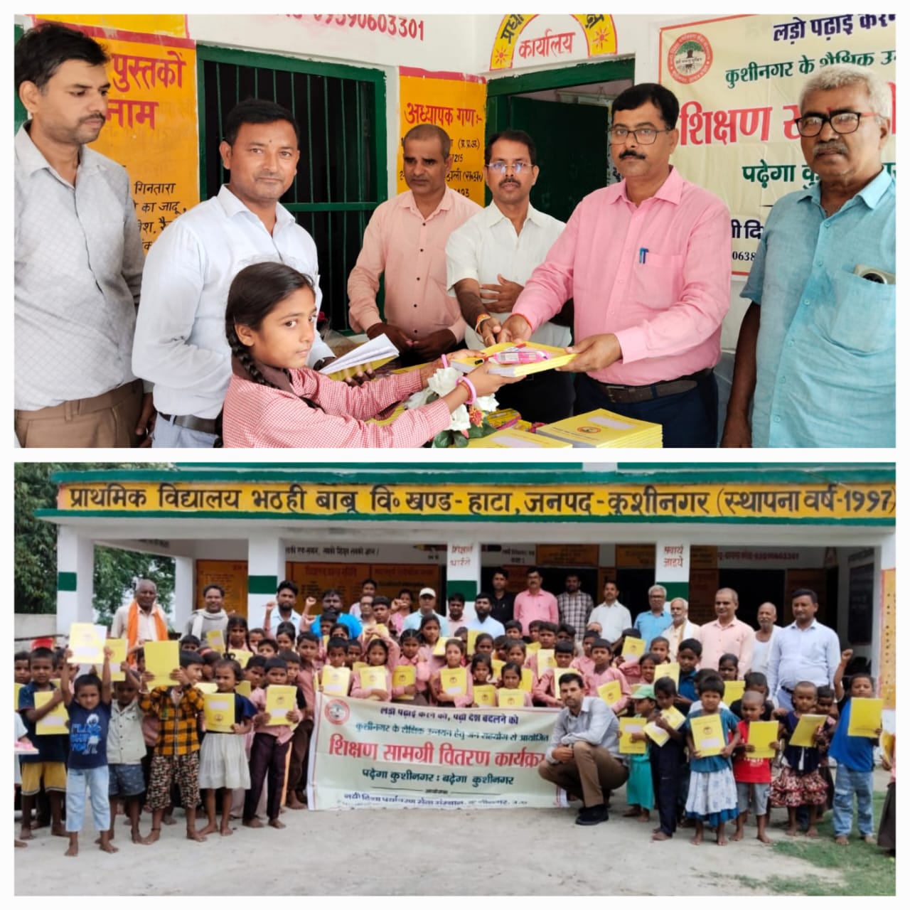 KUSHINAGAR NEWS: नयी दिशा पर्यावरण सेवा संस्थान द्वारा पढ़ेगा कुशीनगर, बढ़ेगा कुशीनगर की भावना के साथ जन सहयोग से चलाये जा रहे शिक्षण सामग्री वितरण कार्यक्रम के क्रम में गुरुवार को हाटा विकास खण्ड स्थित प्राथमिक विद्यालय भठही बाबू में विद्यार्थियों को कॉपी, कलम, पेंसिल, रबर, कटर आदि शिक्षण सामग्री भेंट कर पढ़ने व आगे बढ़ने हेतु प्रोत्साहित किया गया l कार्यक्रम को सम्बोधित करते समाजसेवी अखिलेश चतुर्वेदी ने कहा कि प्राथमिक विद्यालयों की स्थिति पहले की तुलना में अब काफी बेहतर हो गयी है। बच्चों के लिए डेस्क बेंच से लेकर मनोरंजन और खेल कूद की चीजें भी विद्यालय में उपलब्ध हैं। कॉपी, कलम नही मिल पाता तो नयी दिशा द्वारा ये चीजें भी उपलब्ध करा दी जा रही। उन्होंने विद्यार्थियों से इन चीजों से लाभ उठाने और आगे बढ़ने को कहा।कार्यक्रम ग्राम प्रधान सुभाष कान्दू की अध्यक्षता में सम्पन्न हुआ। संचालन नयी दिशा सचिव डॉ0 हरिओम मिश्र,अतिथियों का स्वागत प्रधानाध्यापक धनंजय गुप्ता एवं आभार शिक्षक इसरार अली ने किया। इस अवसर पर नरेंद्र नाथ त्रिपाठी, राजीव नयन द्विवेदी, राजू कुमार, मोहम्मद नसरुद्दीन, अनिल तिवारी, प्रीति मोदनवाल, संझारी देवी, सुभद्रा देवी, संतोष गौतम, राम बदन प्रसाद, राम आशीष गुप्ता, संदीप सिंह, राहुल कुमार, अजय कुमार, सूरज गौड़, सत्येंद्र मद्देशिया, ऋषि मद्देशिया, कैलाश शर्मा, राम भरोसा गुप्ता आदि उपस्थित रहे।