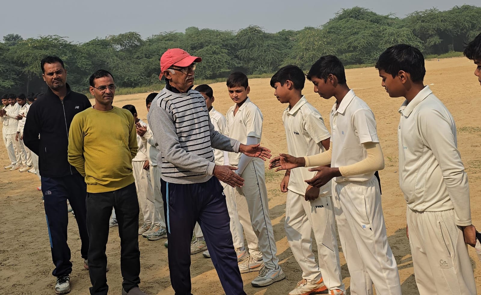 फोटो-एसए इंडोर कप अंडर-12 क्रिकेट प्रतियोगिता में खिलाड़ियों से मिलते देवेश मिश्र