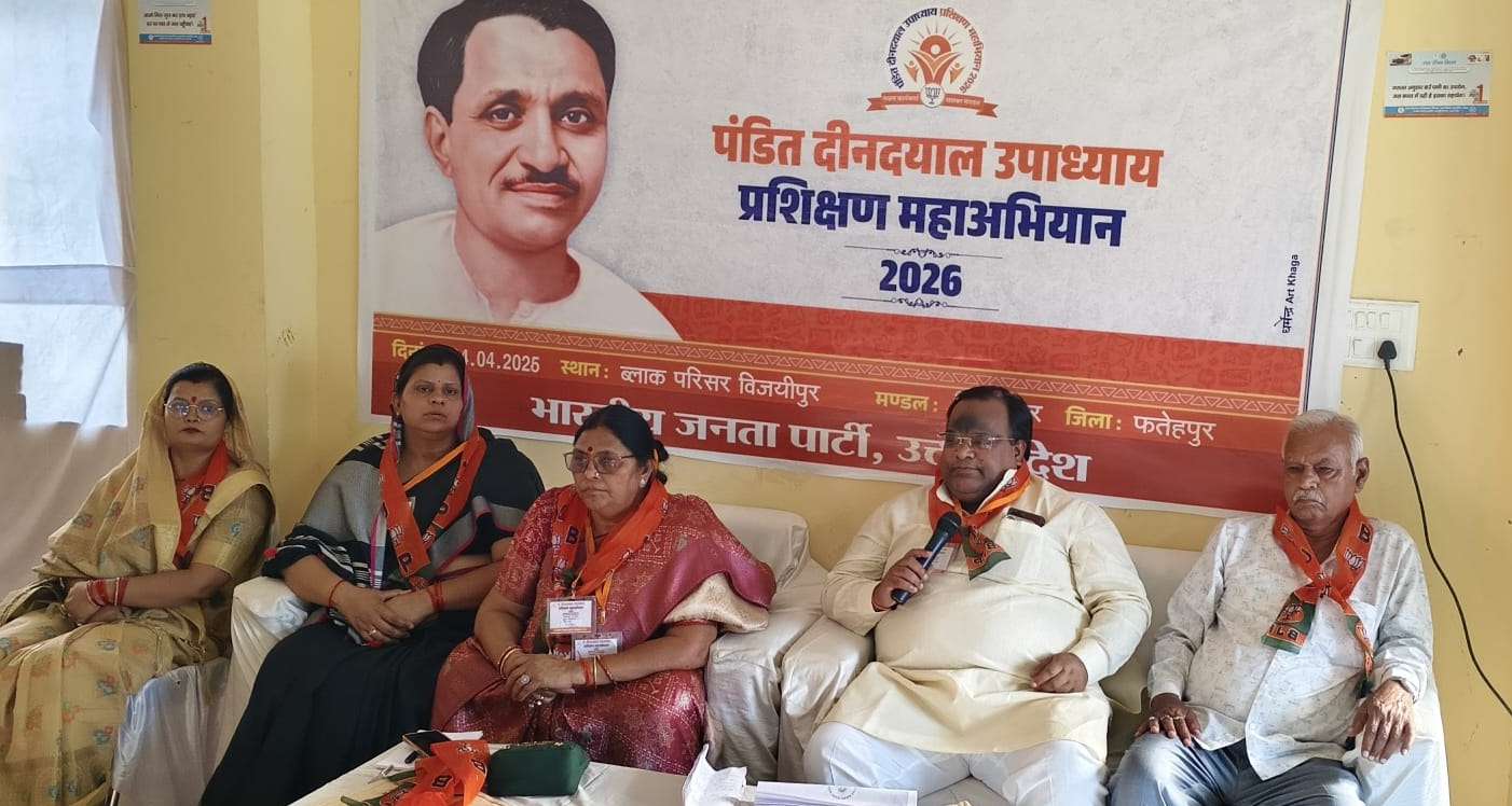 FATEHPUR NEWS: पंडित दीनदयाल उपाध्याय प्रशिक्षण महाअभियान के अंतर्गत शनिवार को विजयीपुर मंडल में भारतीय जनता पार्टी द्वारा प्रशिक्षण वर्ग का आयोजन किया गया। उद्घाटन सत्र में जिलाध्यक्ष अन्नू श्रीवास्तव एवं स्थानीय विधायक कृष्णा पासवान उपस्थित रहीं। जिलाध्यक्ष अन्नू श्रीवास्तव ने “कार्यपद्धति” विषय पर कार्यकर्ताओं को संबोधित करते हुए कहा कि भाजपा केवल एक राजनीतिक दल नहीं, बल्कि राष्ट्रवाद की विचारधारा को आगे बढ़ाने वाला संगठन है। उन्होंने कहा कि पार्टी सत्ता के लिए नहीं, बल्कि त्याग, तपस्या और राष्ट्र निर्माण के उद्देश्य से कार्य करती है। संगठन की कार्यपद्धति में सतत संपर्क और संवाद को प्रमुख स्थान दिया जाता है। विधायक कृष्णा पासवान ने संगठनात्मक ढांचे को मजबूत करने पर जोर देते हुए कहा कि कार्यकर्ताओं की निष्ठा और कार्यशैली ही उन्हें आगे बढ़ाती है। उन्होंने कार्यकर्ताओं को पार्टी की नीतियों के अनुरूप कार्य करने के लिए प्रेरित किया। प्रशिक्षण वर्ग के द्वितीय सत्र में विमलेश पांडेय ने सोशल आईटी विषय पर तथा तृतीय सत्र में दिनेश बाजपेई ने वैचारिक अधिष्ठान विषय पर अपने विचार प्रस्तुत किए। कार्यक्रम में वर्गाधिकारी के रूप में जिला उपाध्यक्ष अपर्णा सिंह गौतम मौजूद रहीं। जिला मीडिया प्रभारी प्रवीण सिंह ने बताया कि प्रशिक्षण महाअभियान 2026 के अंतर्गत जनपद के सभी मंडलों में ऐसे वर्ग आयोजित किए जा रहे हैं, जिनका उद्देश्य कार्यकर्ताओं को पार्टी की रीति-नीति में दक्ष बनाना है। इस अवसर पर मंडल अध्यक्ष प्रीती सिंह, रामराज सिंह, अनिल त्रिपाठी, अजय मिश्रा, विक्रम निषाद, छोटू सिंह परिहार, निरंजन शुक्ला, विज्मा पासवान, चन्द्र मोहन निषाद, नयन लोधी सहित मंडल पदाधिकारी, शक्ति केंद्र संयोजक, मोर्चा अध्यक्ष, महामंत्री एवं बड़ी संख्या में कार्यकर्ता उपस्थित रहे।