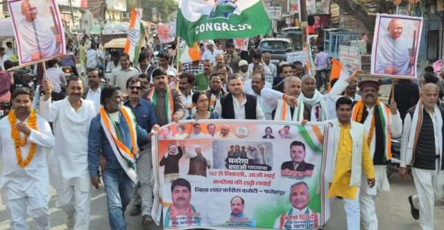 FATEHPUR NEWS: केंद्र सरकार की नीतियों के विरोध और मनरेगा योजना को बचाने के उद्देश्य से कांग्रेस पार्टी द्वारा चलाए जा रहे ‘मनरेगा बचाओ संग्राम’ अभियान के तहत शुक्रवार को खागा विधानसभा क्षेत्र में ग्रामीण मजदूरों के साथ भव्य पदयात्रा निकाली गई। यह पदयात्रा ग्राम त्रिलोचनपुर से प्रारंभ होकर विभिन्न ग्रामीण क्षेत्रों से होते हुए खागा नगर पंचायत तक करीब 16 किलोमीटर लंबी रही। पदयात्रा में महिलाओं सहित बड़ी संख्या में ग्रामीणों ने भाग लिया। हाथों में तख्तियां लेकर और सरकार विरोधी व मनरेगा बचाओ के नारे लगाते हुए कार्यकर्ता नगर पंचायत पहुंचे, जहां गांधी प्रतिमा पर माल्यार्पण कर यात्रा का समापन किया गया। पैदल यात्रा का नेतृत्व प्रदेश से नियुक्त प्रभारी कनिष्क पांडेय, जिला कांग्रेस अध्यक्ष महेश द्विवेदी और शहर अध्यक्ष आरिफ गुड्डा ने किया। इससे पहले त्रिलोचनपुर गांव में आयोजित जनसभा को संबोधित करते हुए जिला अध्यक्ष महेश द्विवेदी ने भाजपा सरकार की नीतियों पर जमकर हमला बोला। उन्होंने कहा कि मोदी सरकार की जनविरोधी नीतियों से जनता पूरी तरह त्रस्त है। अब देश की जनता प्रधानमंत्री नरेंद्र मोदी को पहचान चुकी है और उन्हें नकार चुकी है। वहीं शहर अध्यक्ष आरिफ गुड्डा ने कहा कि मोदी जी ने जनता को गुमराह कर उनके साथ विश्वासघात किया है, जिसे देश कभी भूल नहीं सकता। आज जनता उन्हें घृणा की दृष्टि से देख रही है और सत्ता से हटाने के लिए व्याकुल है। पदयात्रा में महिला नेताओं की भी सक्रिय भागीदारी रही। इसी क्रम में पदयात्रा में महिला कांग्रेस की जिला अध्यक्ष व पूर्व विधानसभा प्रत्याशी तथा गुलाबी गैंग लोकतांत्रिक की अध्यक्ष हेमलता पटेल के नेतृत्व में बड़ी संख्या में महिलाओं ने भी जोशपूर्वक भागीदारी निभाई। महिला जिला अध्यक्ष हेमलता पटेल ने कहा कि मनरेगा ग्रामीण अर्थव्यवस्था की रीढ़ है। यह गरीबों और महिलाओं के लिए सम्मानजनक रोजगार का साधन है, जिसे कांग्रेस कभी कमजोर नहीं होने देगी। वहीं कांग्रेस नेताओं ने एक स्वर में कहा कि मनरेगा गरीब और ग्रामीण मजदूरों की जीवनरेखा है, जिसे कमजोर करने की किसी भी कोशिश का कांग्रेस सड़कों पर उतरकर विरोध करती रहेगी और मजदूरों के हक की लड़ाई लगातार जारी रहेगी। इस दौरान मुख्य रूप से महिला नेता माधुरी रावत, हेमलता पटेल, वरिष्ठ नेता राजेंद्र शुक्ला, कलीम उल्ला सिद्दीकी, रंजीत मौर्य, देवी प्रकाश दुबे, आरिफ खान, आदित्य श्रीवास्तव, सैयद सहाब अली, राम नरेश महराज, चौधरी मोइन राइन, नवनीत तिवारी, निजामुद्दीन, डॉ. अब्दुल हमीद, नसीम अंसारी सहित सैकड़ों कांग्रेस कार्यकर्ता और ग्रामीण मजदूर शामिल रहे।